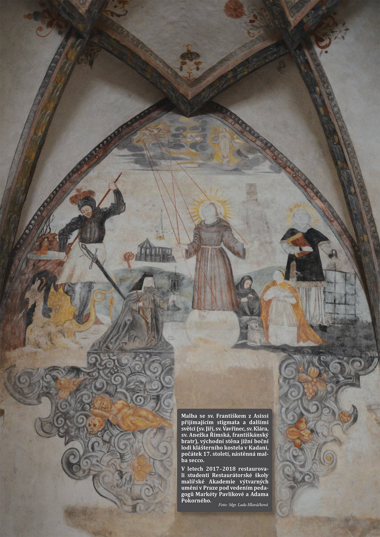obnovují nástěnné malby v kostele Františkánského kláštera v Kadani. Jejich