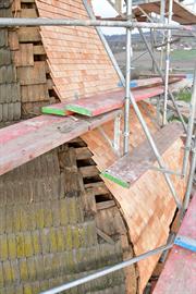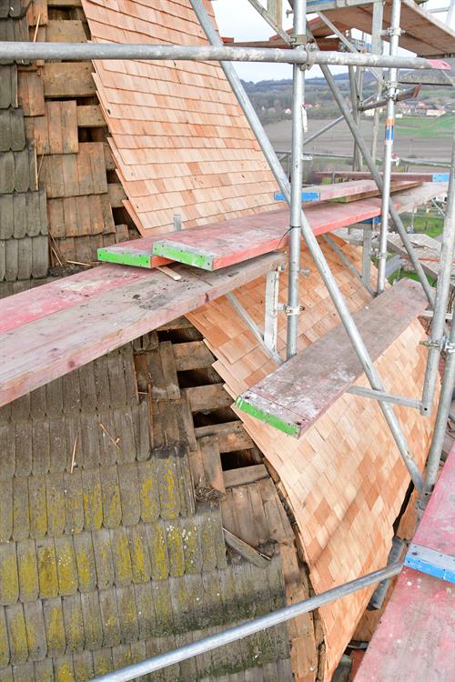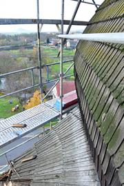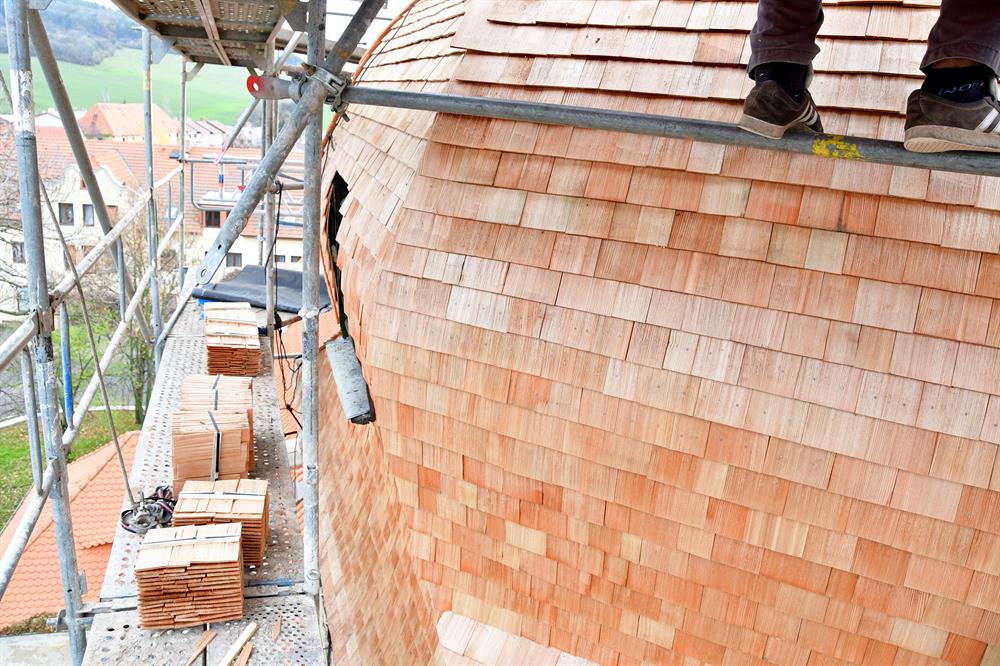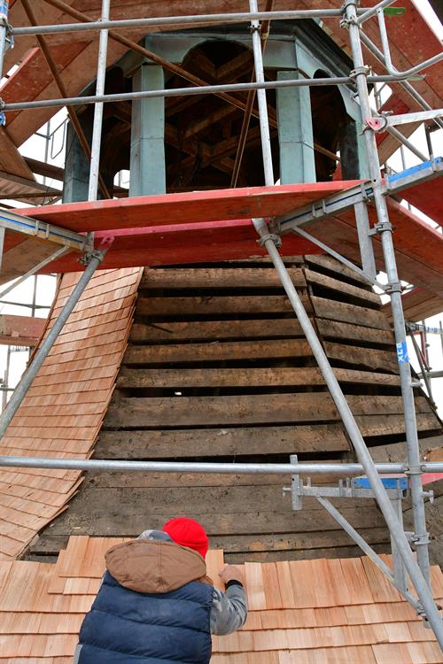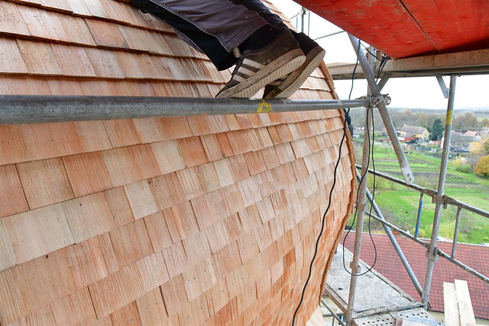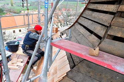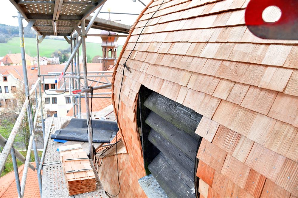 Na jednom z významných objektů litoměřické diecéze, kostelu Stětí sv. Jana Křtitele v obci Libčeves z doby okolo let 1220 – 1230, probíhá již několikátá fáze opravy. V letech 2015 – 2017 bylo provedeno statické zajištění kostela, presbytáře a koruny presbytáře, během dalších dvou let se opravy dočkala střecha a sanktusník. V letošním roce se uskutečňuje výměna krytiny báně věže. Opotřebované řezané šindele z 80. let minulého století se vyměňují za nové štípané šindele z modřínového dřeva. Na příští roky se plánuje obnova vitráží, ošetření a zpevnění stavebního kamene. Některé opukové kameny se budou muset vyměnit. Dělo se tak i během minulých několika staletí, což ukazují fotografie, kde je tento jejich rozdíl velmi patrný. Na věži kostela se nachází typický prvek z doby vzniku kostela – vezděný kříž z čedičového kamene. Ve špici kostela byla také nalezena kovová schránka s dobovými dokumenty, které budou po prozkoumání navráceny na své místo.