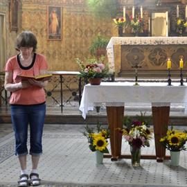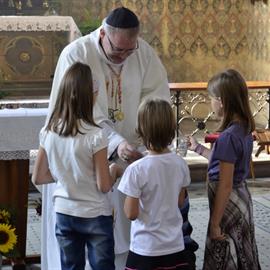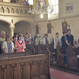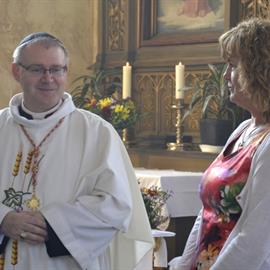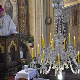 obnovená mariánská pouť, J.M. can. Martin Davídek, starostka obce Miroslava Vencláková, 8. září 2012, kostel Narození Panny Marie, Libochovany
