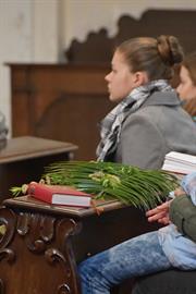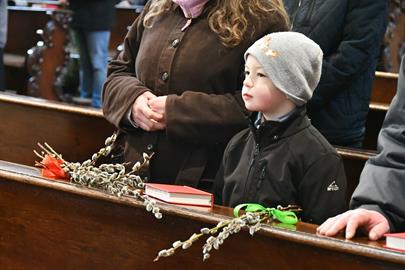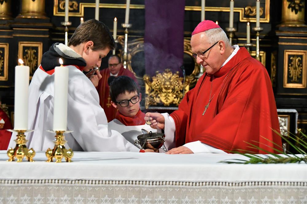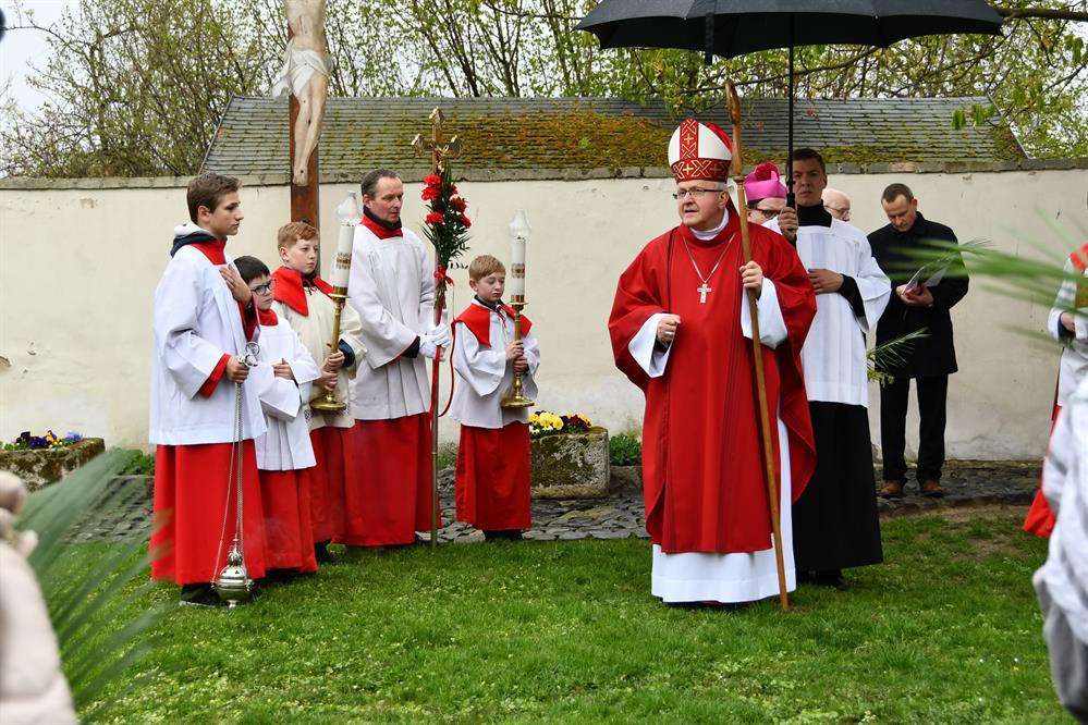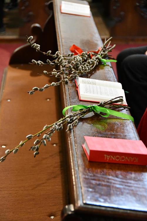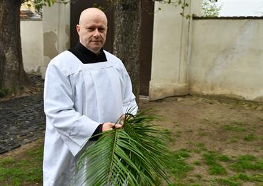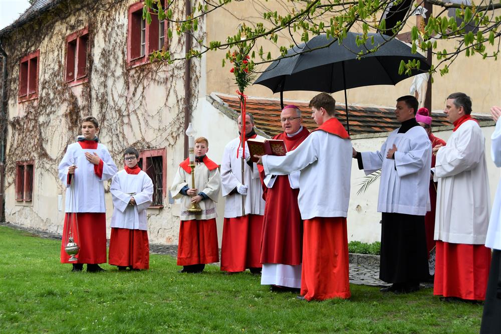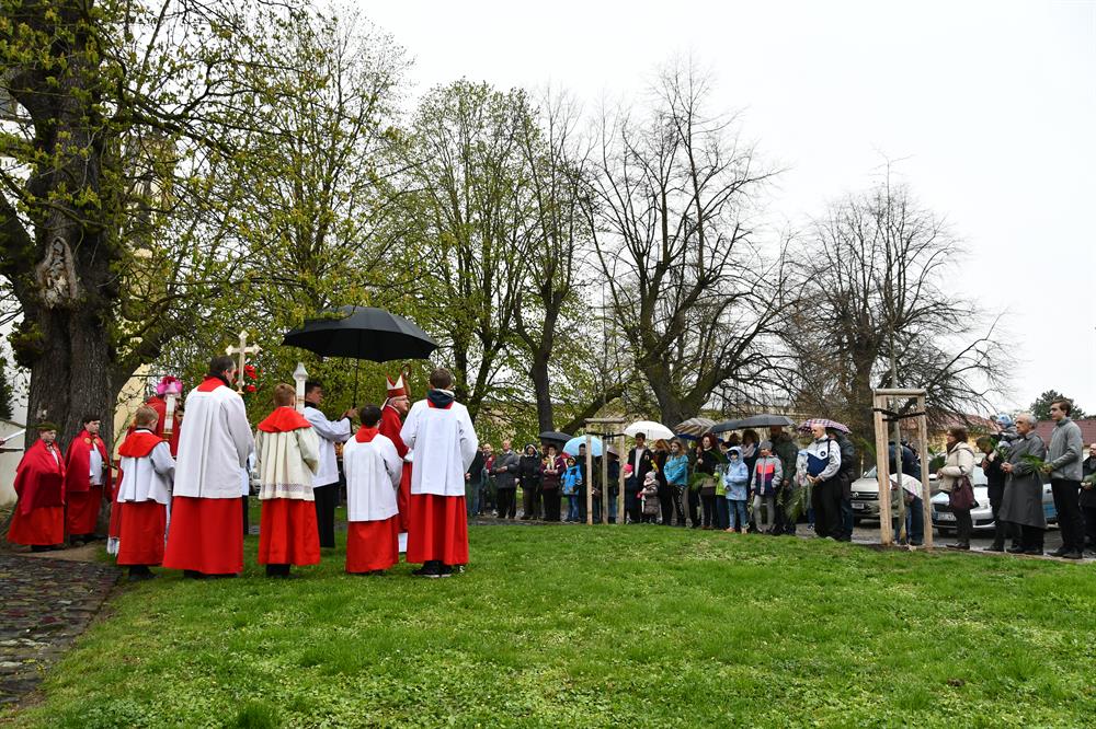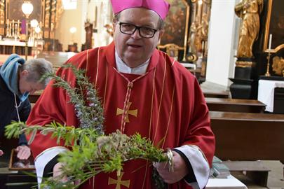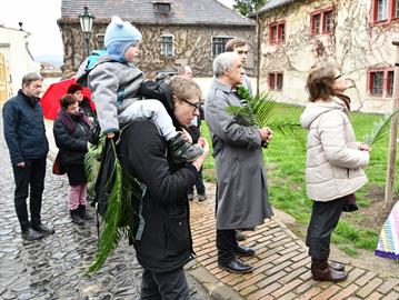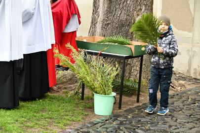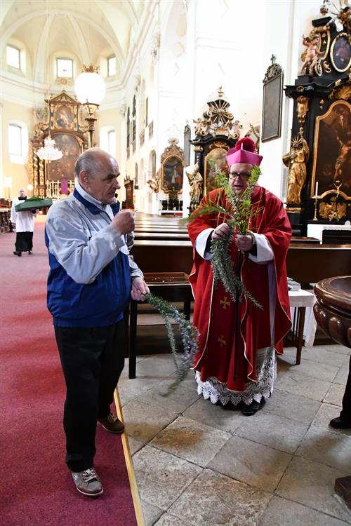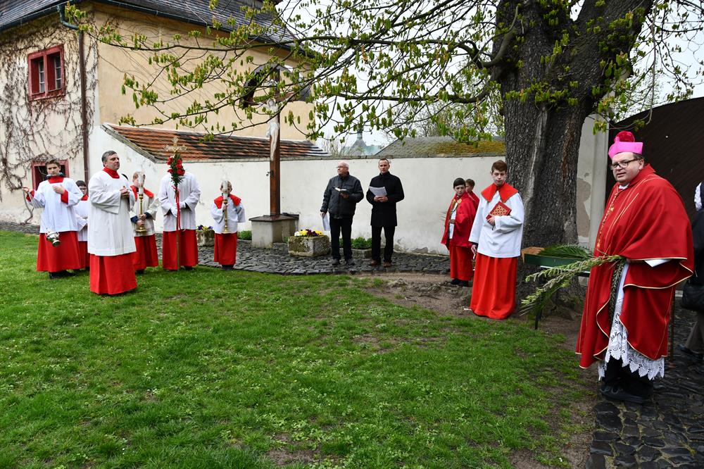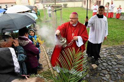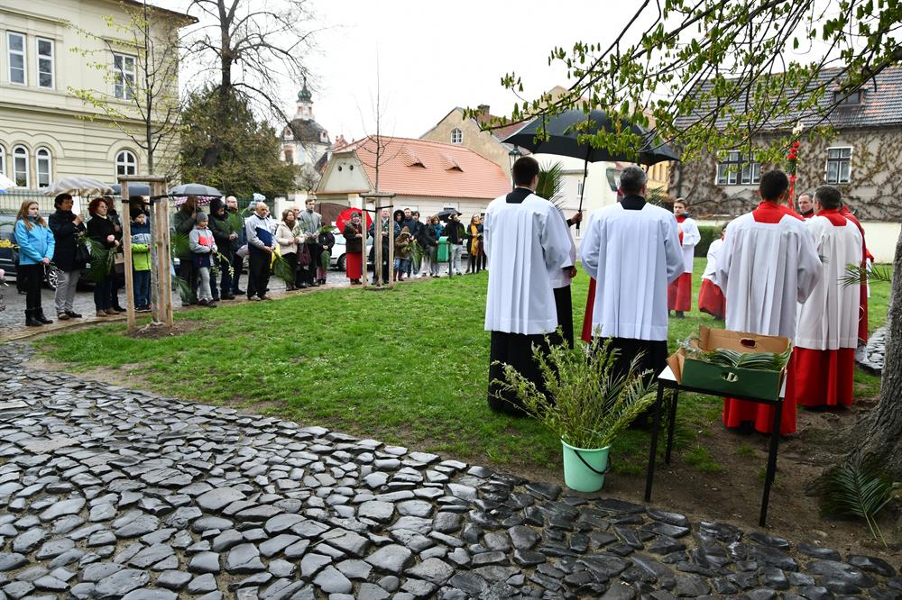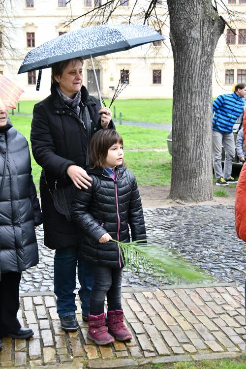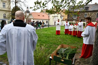 litoměřický biskup Mons. Jan Baxant požehnal ratolesti. Někteří přítomní si je