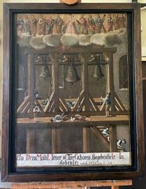 Obě malby zobrazují stejný námět neštěstí, ke kterému došlo v Soběnicích 15. 7. 1755. Při silné bouři uhodil blesk do zvonice a usmrtil tři osoby, které zvonily „proti povětří“, a několik dalších osob omráčil. Barokní malba je provedena detailněji, mladší kopie obsahuje navíc nápis s chronogramem: „EIn DenckMaLIener sCreCkbaren BegebenheIt In SobenItz Ao: 17:55. den 15. Julii“. Podle Haudekovy Vlastivědy litoměřického okresu z roku 1887 byl stejný nápis i na stropě hlavního vstupu soběnického kostela, a na památku neštěstí se měl v Soběnicích konat každého 15. července tzv. „Gelöbnistag“.