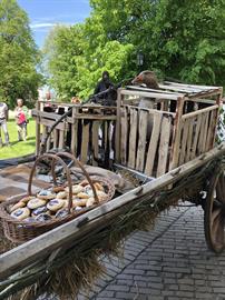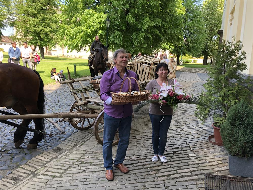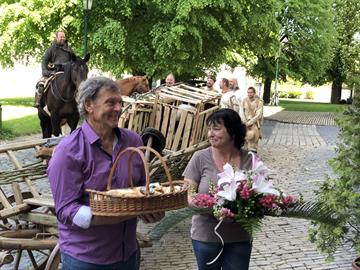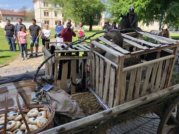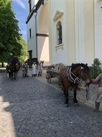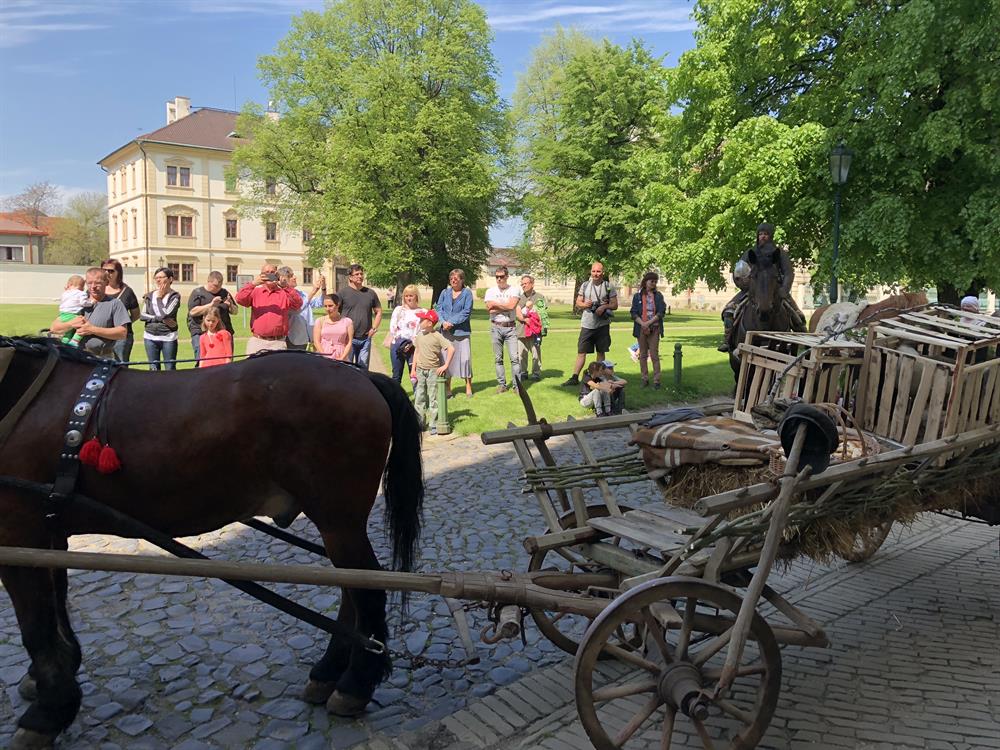 koňským povozem obyvatelé obce Píšťany. Stalo se to proto, že obec slaví výročí