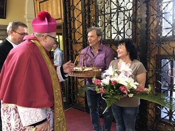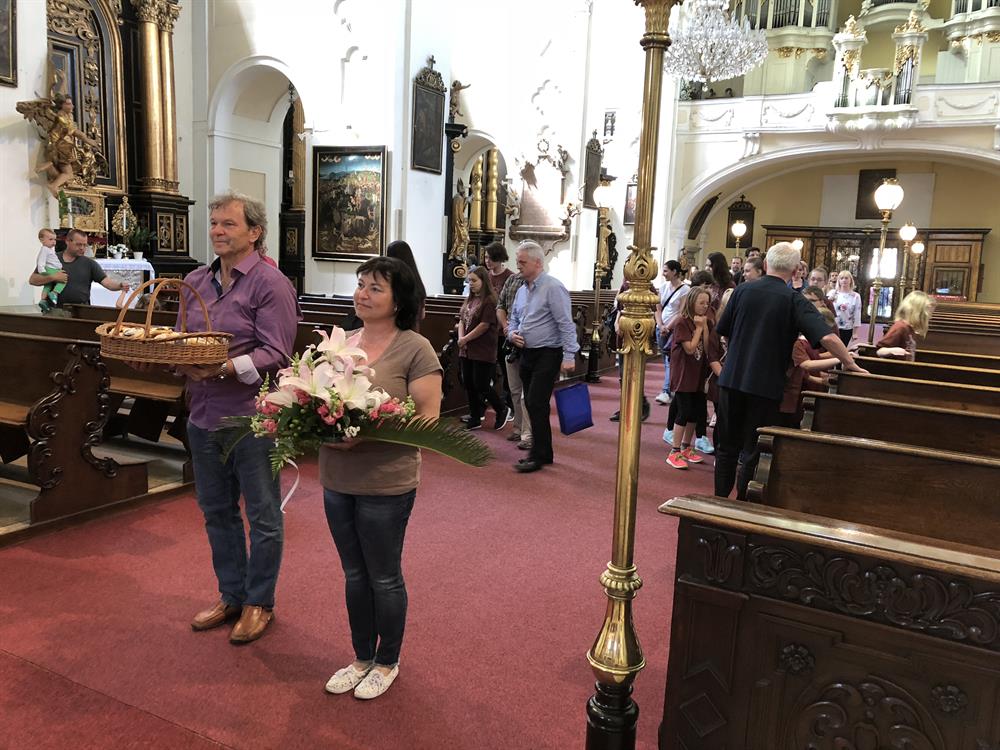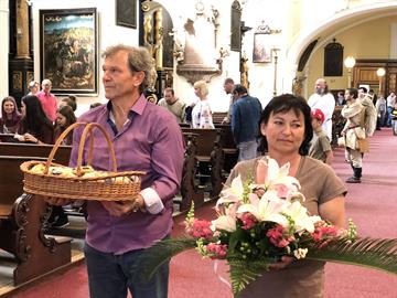 Obyvatelé obce Píšťany přinesli naturálie do litoměřické katedrály