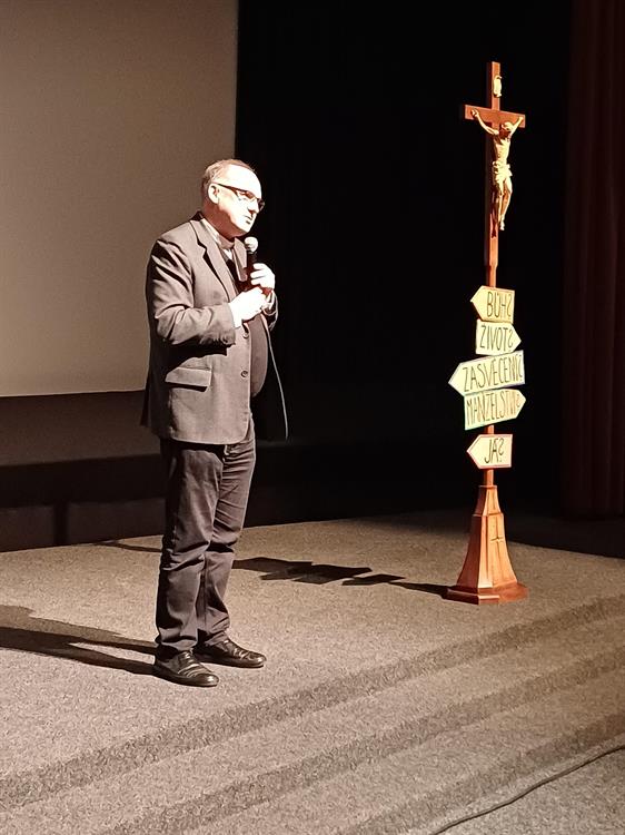 v litoměřickém kině Máj biskup Stanislav Přibyl modlitbou, na kterou navázal osobním