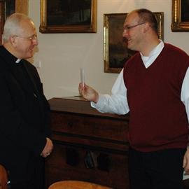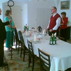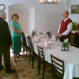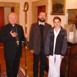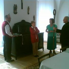 Oslava narozenin Mons. Jana Baxanta Jana Michálková, Pavel Baxant, Karel Kočí 8.října 2009 61. narozeniny biskupa Jana Baxanta, Litoměřice