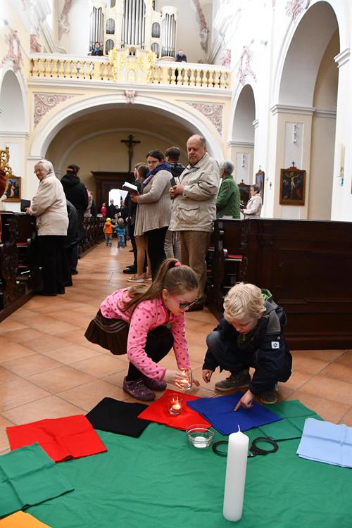 aktivně pomáhaly. V kostele Všech svatých se pobožnosti křížové cesty konají pravidelně v pátek po celou postní dobu. Každý pátek vede pobožnost jiná skupina farníků - střídají se již tradičně děti z náboženství, členové FR, senioři, maminky s dětmi, tatínci s dětmi, mládež. Na Velký pátek vede křížovou cestu kněz.