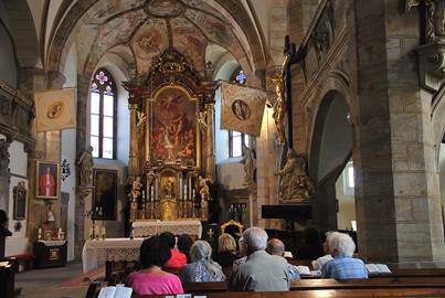Ve středu 20. září 2023, v den výročí posvěcení litoměřické katedrály, jsme uspořádali podzimní výlet pro farníky-seniory z Rumburku a přilehlých farností. Dvacet lidí se společně vydalo do České Kamenice, kde jsme celou akci zahájili mší svatou, kterou pro nás v kostele sv. Jakuba sloužil P. Jozef Kujan SDB. Kostel nás uchvátil svou krásou, její původ nám ozřejmil místní administrátor P. ThMgr. Josef Jaroš. Duchovně občerstveni jsme se ještě osvěžili v místní cukrárně a obdivovali jsme malebnost náměstí i zámeckého parku. Pak už na nás čekala prohlídka poutní Kaple Navštívení P. Marie. Cestou domů jsme se kochali krásnou krajinou Polevska, kde se někteří na krátko zastavili v kostele sv. Petra a Pavla v Prysku. Putování jsme s některými zakončili sladkou zmrzlinovou tečkou. Výlet byl pro celé společenství radostným zážitkem, děkujeme.