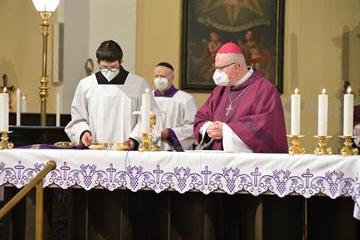 Ve středu 17. února 2021, v den kdy církev prožívá Popeleční středu a věřící jsou na znamení pokání označováni popelcem, sloužil litoměřický biskup Mons. Jan Baxant ve své katedrále ranní mši svatou. Koncelebrovali s ním kanovníci litoměřické kapituly: probošt kapituly a farář litoměřické dómské farnosti u sv. Štěpána J.M. can. Mgr. Jiří Hladík, O.Cr, ECLJ; generální vikář J.M. can. ICLic. Mgr. Martin Davídek; prezident Diecézní charity Litoměřice a děkan litoměřické farnosti u Všech svatých J.M. can. ICLic. Mgr. Józef Szeliga. V homilii litoměřický biskup připomněl mnohem horší pandemii než je Covid 19, totiž pandemii hříchu, jíž můžeme čelit pouze kajícím srdcem. První, kdo přijal toto kající znamení byl právě litoměřický biskup Mons. Jan Baxant, jemuž generální vikář Mons. Martin Davídek posypal hlavu posvěceným popelem. Oba pak udělovali věřícím přítomným v katedrále popelec v letošním roce z hygienických důvodů mlčky sypáním na hlavu. Ať tedy letošní postní dobu, která právě začala, prožijeme nejen v boji proti koronaviru, ale zvláště jako ti, kteří bojují s mnohem horší pandemií, totiž hříchem.