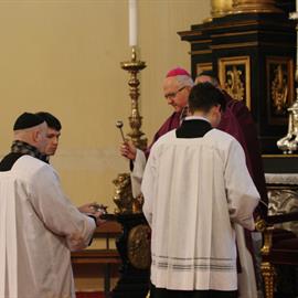 Popeleční středa, mše svatá s udílením popelce, hlavní celebrant litoměřický biskup Mons. Jan Baxant, 5. března 2014, katedrála sv. Štěpána, Litoměřice