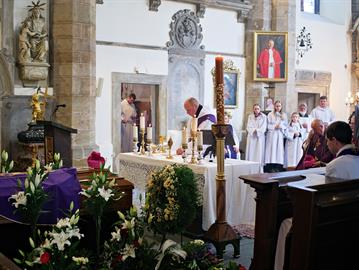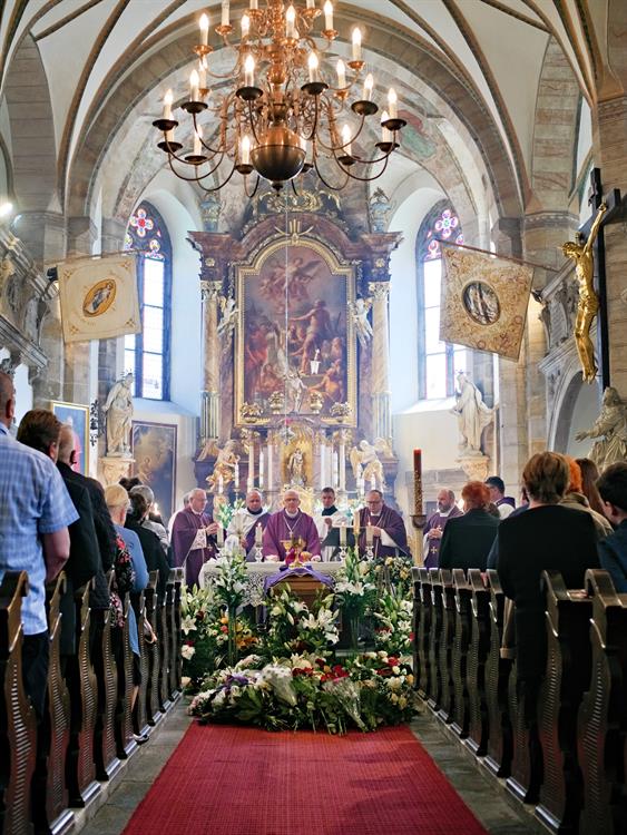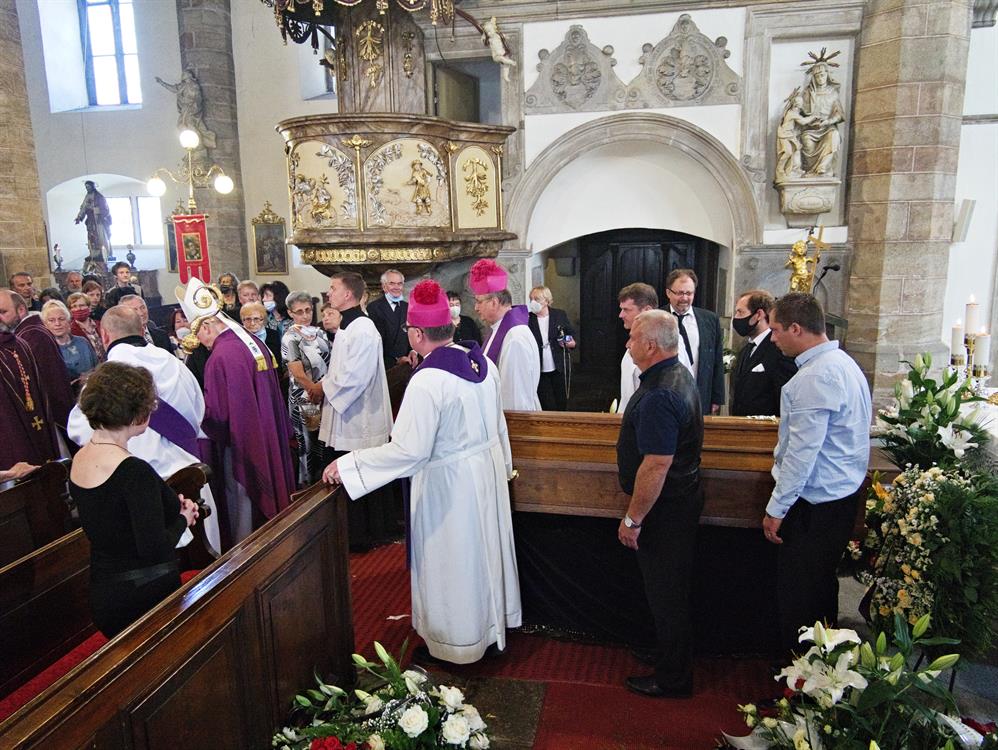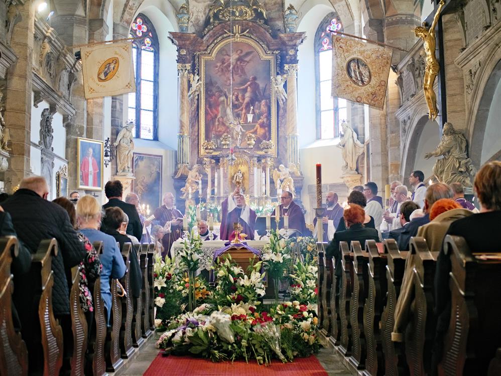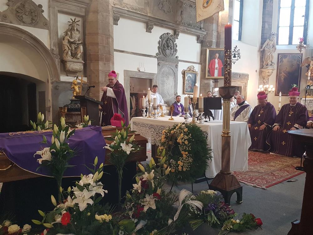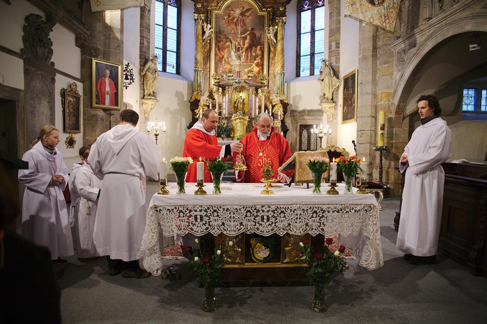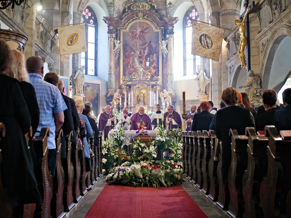 Červeným. Zádušní mši svatou celebroval za přítomnosti kanovníků litoměřické