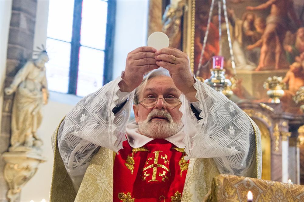 biskup Mons. Jan Baxant. Kázání pronesl probošt litoměřické kapituly prelát