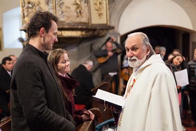 nejbližší rodinou, ale i farníky, přáteli, zástupci města a také umělci, se