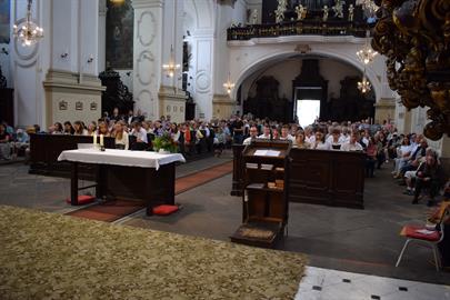 V 9.30 se poutníci ve zcela zaplněné bazilice společně modlili růženec, v 10.00 byla slavena poutní mše svatá. Hlavním celebrantem byl P. Florián Mross, koncelebrovalo 7 kněží z Lužice a jáhenskou službu konal místní jáhen. Bohoslužbu doprovodil sbor mladých poutníků a instrumentalisté. Pěší poutníci odešli ve čtvrtek ráno.