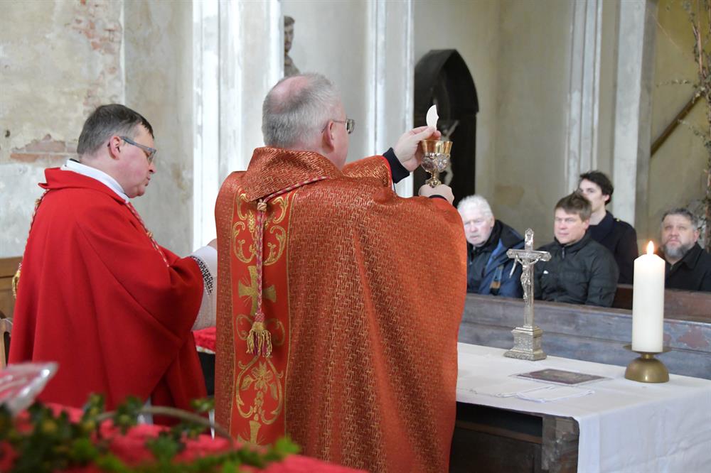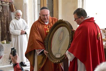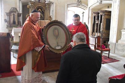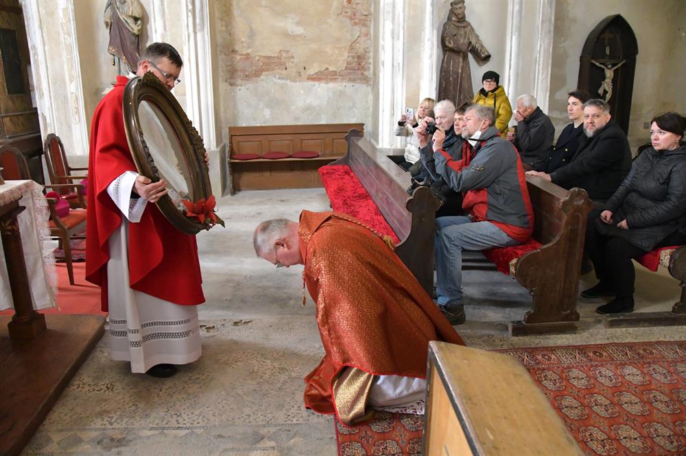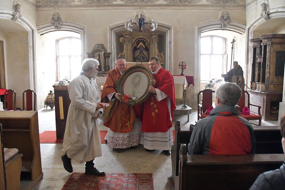 V sobotu 2. dubna 2022 se od 11 hodin konala v kapli Panny Marie Bolestné na státním zámku Jezeří pouť k trnu z Kristovy trnové koruny na Jezeří. Poutní mši svaté předsedal generální vikář Mons. Martin Davídek, se kterým koncelebroval okrskový vikář krušnohorského vikariátu a děkan litvínovské farnosti J.M. can. Mgr. Grzegorz Czerny. Poutní mše svatá se v kapli na Jezeří koná od roku 1784, kdy do ní z Vídně přenesli Lobkowitzové trn z Kristovy trnové koruny a dva centimetry dlouhý úlomek pravého kříže, které od císaře Karla V. získal pravděpodobně Kryštof z Lobkowitz. V zámku na Jezeří vznikla po umístění do kaple každoroční poutní tradice k úctě k těmto ostatkům. V době od soboty před 4. nedělí postní do soboty před 5. nedělí postní se k těmto ostatkům pak pravidelně konaly poutě a to tak, že byly převáženy po různých kostelích v okolí. Zpět do zámecké kaple se pak vracely v pondělí po 5. neděli postní. Tradice však byla přerušena II. světovou válkou a mše svaté se v zámku na Jezeří pak začaly příležitostně konat až po listopadu 1989. V tomto roce však zámek navázal na tradiční postní pouť, která se v místě nekonala asi 80 let. Původní ostatky se nepodařilo dohledat a místní kastelánka s ostatními průvodci zámku věří, že jsou na Jezeří ukryty a zámek je tak Boží milostí chráněn stále. Zachoval se však obraz s vyobrazením trnu z Kristovy koruny, který byl umístěn do kaple. V závěru letošní bohoslužby mohli poutníci tak uctít alespoň vyobrazení této vzácné relikvie. V sobotu 2. dubna 2022 byla na zámku Jezeří rovněž zahájena návštěvní sezóna, a tak budou moci návštěvníci v kapli spatřit také toto zobrazení trnu z Ježíšovy trnové koruny. Ať Bůh dá svou milost všem, kteří se na tato místa přijdou poklonit a uctít našeho Pána Ježíše Krista.