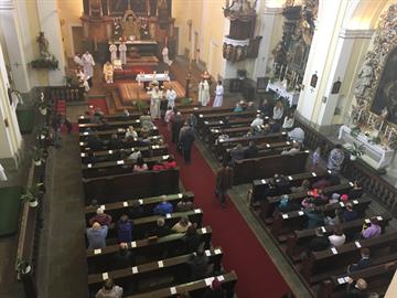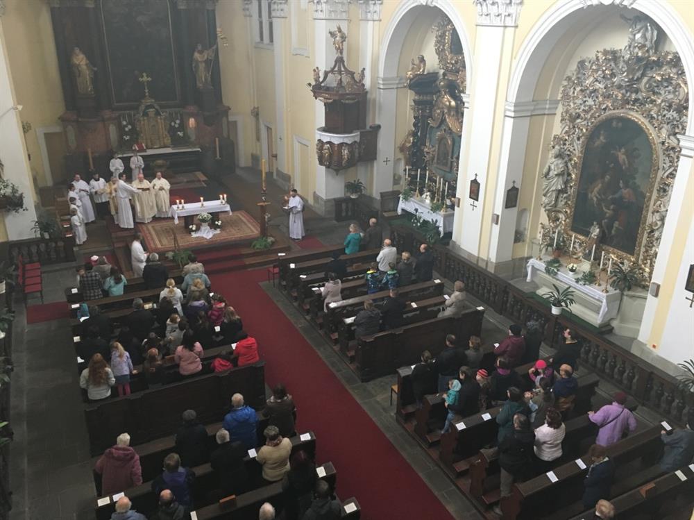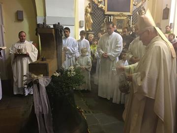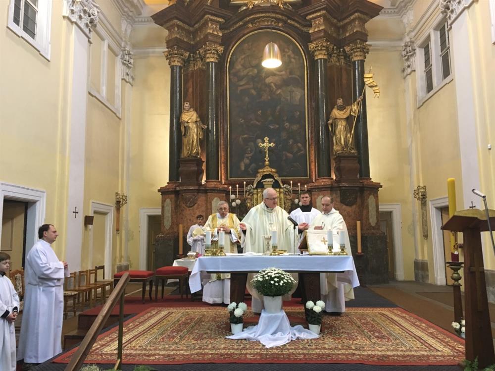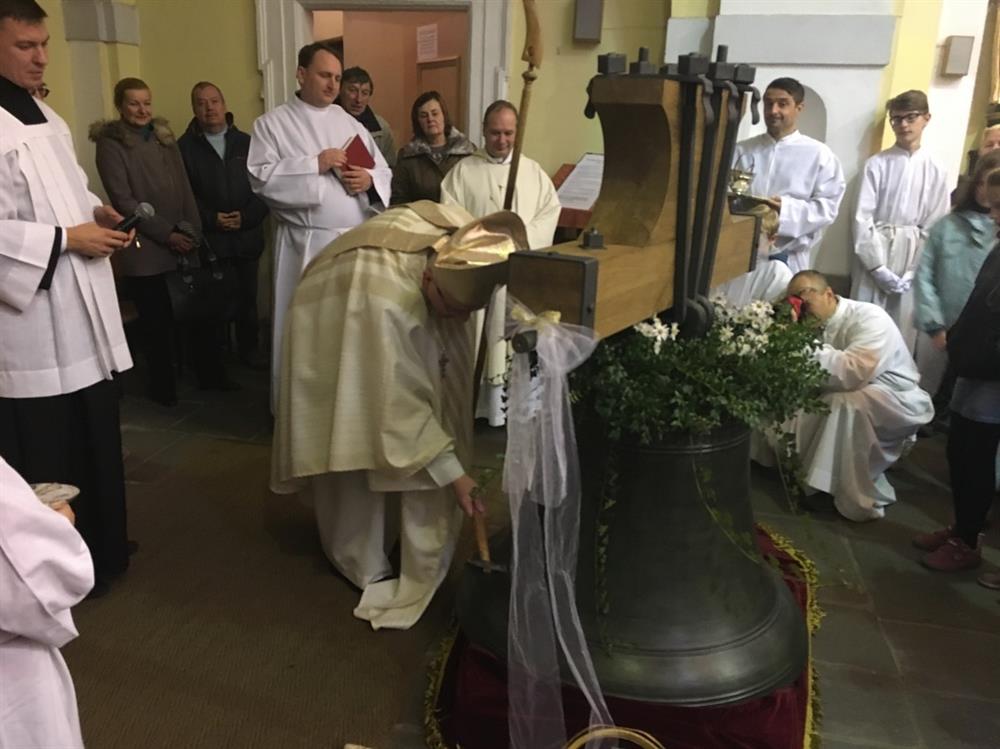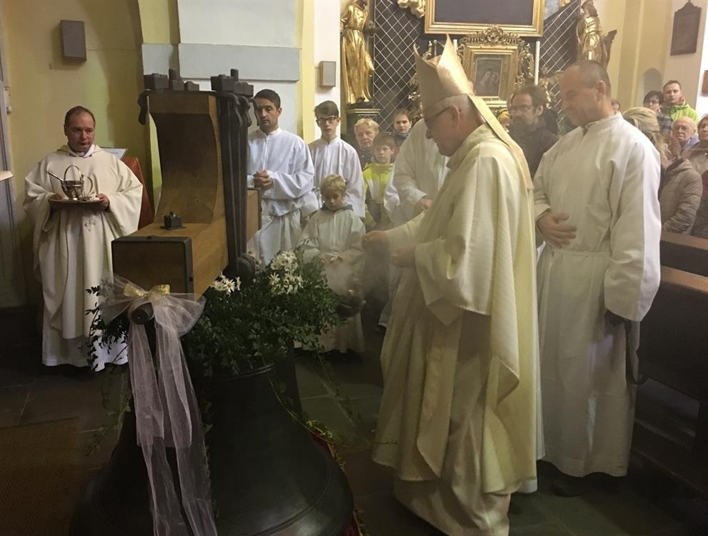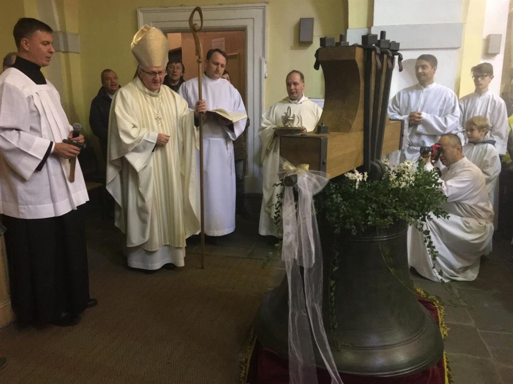 Poutní mše svatá a žehnání zvonu pro baziliku v České Lípě, hlavním celebrantem poutní mše svaté byl litoměřický biskup Mons. Jan Baxant, koncelebroval děkan českolipské farnosti a kapitulní kanovník J. M. Viliam Matějka, 29. října 2017, bazilika Všech svatých, Česká Lípa