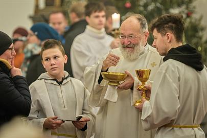 Poutní mši svatou v kostele sv. Antonína Velikého v Liberci sloužil v neděli 14. ledna 2024 arciděkan P. Radek Jurnečka. Mši svatou doprovodila Schola AV21.