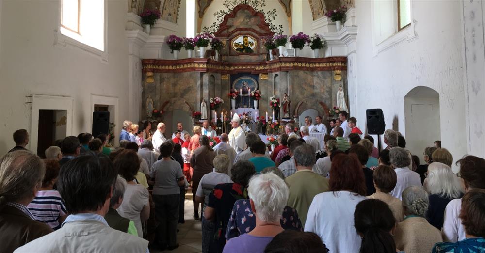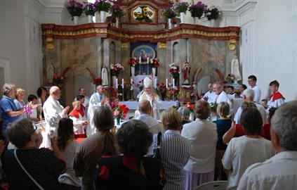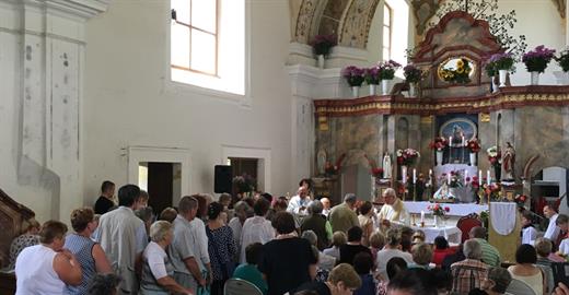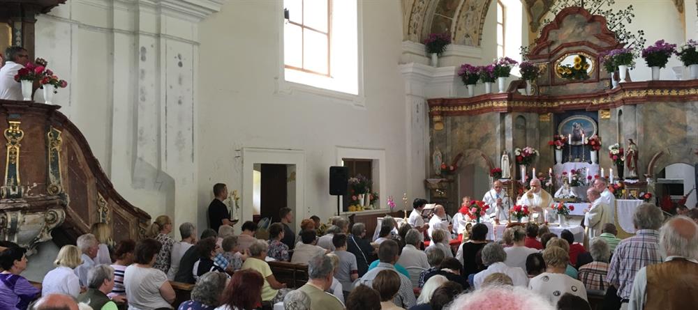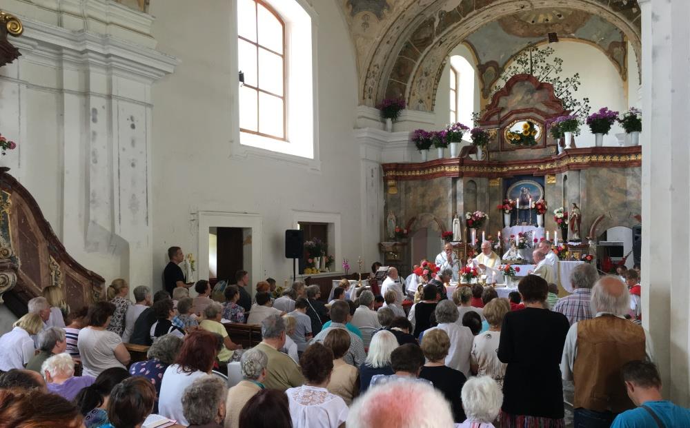 Mariánská poutní slavnost za účasti biskupa Jana Baxanta, 9. července 2017, kostel Nanebevzetí Panny Marie, Křešice u Litoměřic