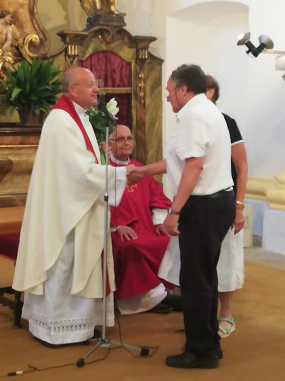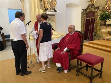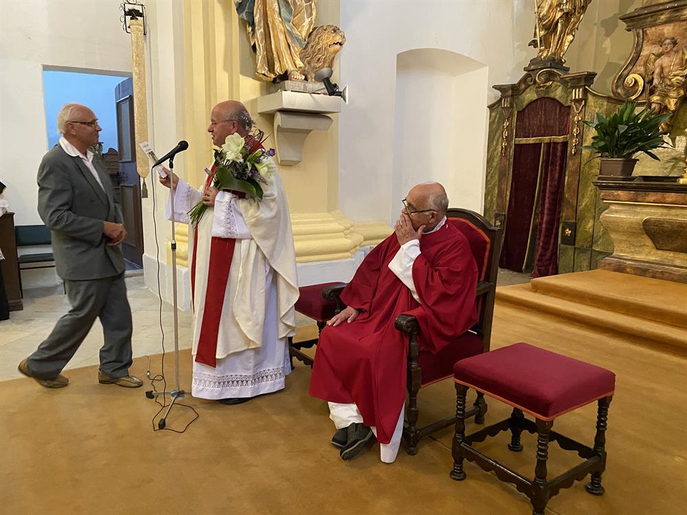 ICLic. Mgr. Martin Davídek. Při mši svaté pogratulovali farníci prelátu Karlu