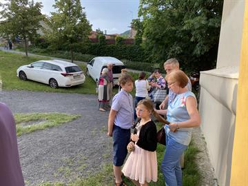Havelkovi k 40. výročí od kněžského svěcení. Po mši svaté byli pak účastníci