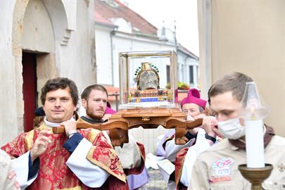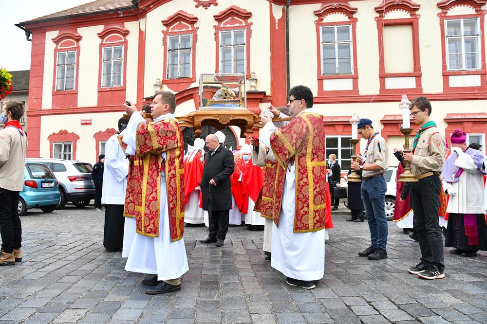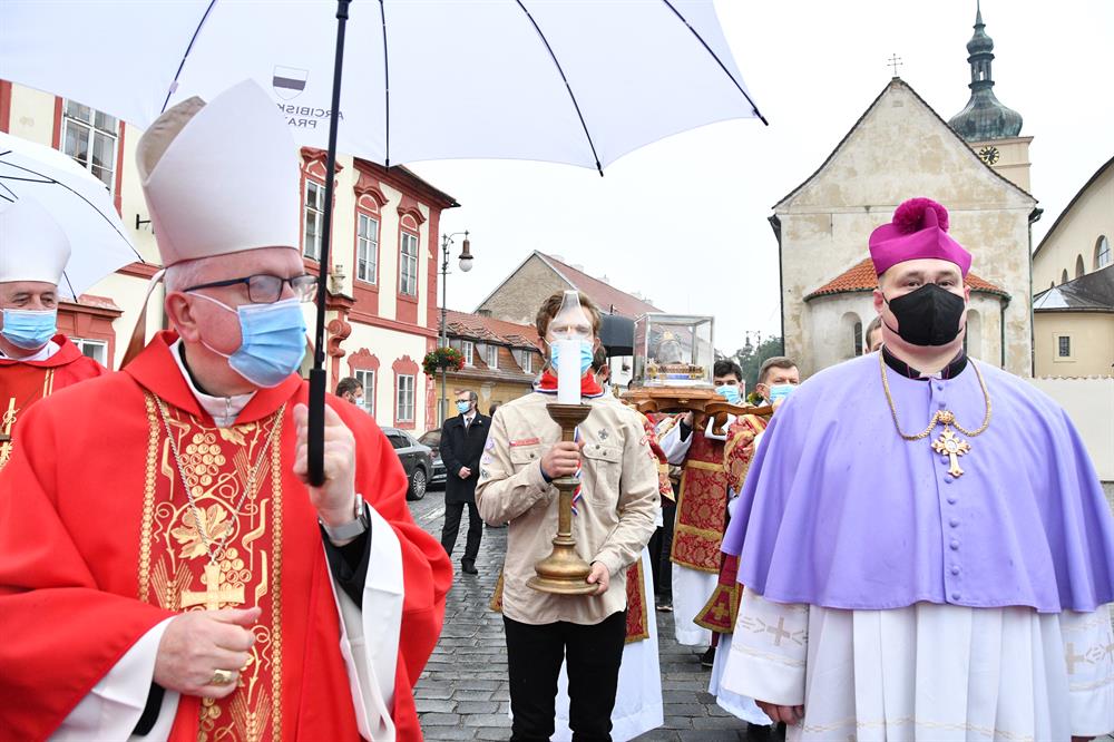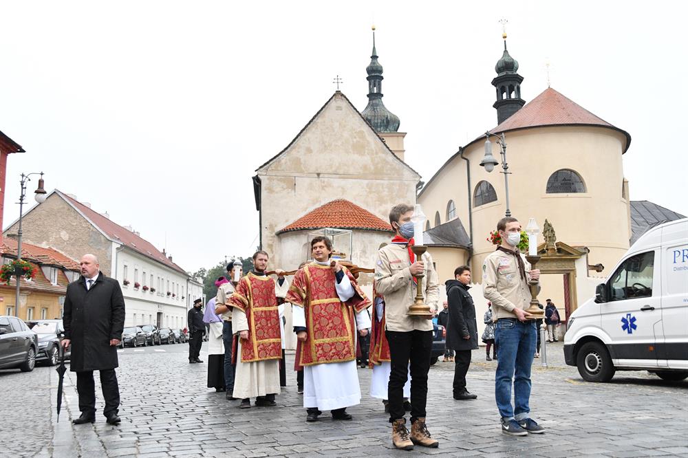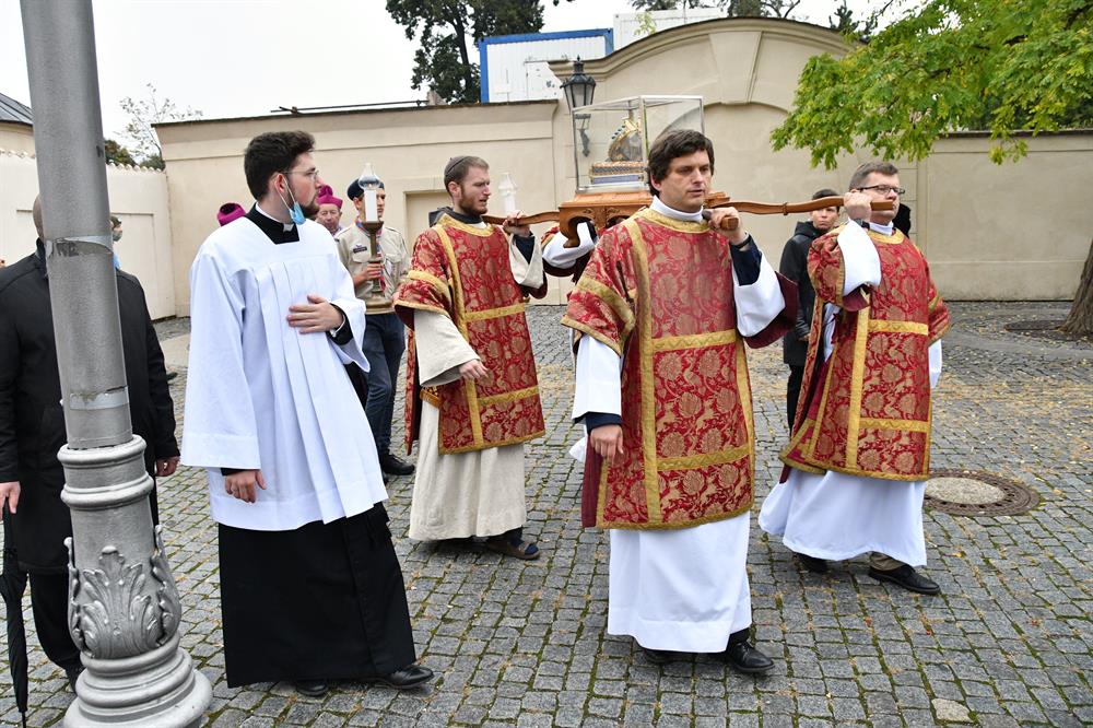I přes současnou epidemiologickou situaci dorazili někteří poutníci z litoměřické diecéze v pondělí 28. září 2020 do Staré Boleslavi na Národní svatováclavskou pouť. Byl mezi nimi i litoměřický biskup Mons. Jan Baxant, generální vikář Mons. Martin Davídek, kněží, jáhni i mnozí litoměřičtí diecézané. Přestože poutníky halily nezbytné roušky, některé se podařilo identifikovat a zachytit i na fotografii. Poutníkům, kteří podstoupili letošní pouť patří zvláštní úcta, neboť modlitba k sv. Václavovi na místě jeho zavraždění jistě nebude opomenuta. Ať patron země České sv. Václav vyprosí nám pokojné časy, ve kterých budeme moci bez vnějších omezení chválit Trojjedinného Boha, Matku Boží Pannu Marii a všechny svaté. Svatý Václave, vévodo země České, nedej zahynout nám ni budoucím…
