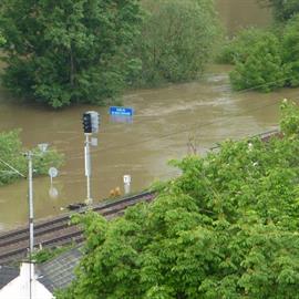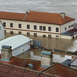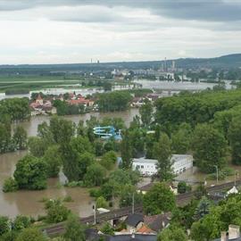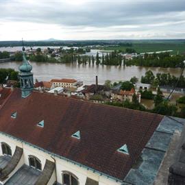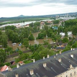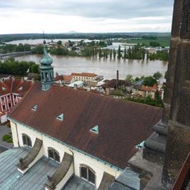 Povodeň 2013: pohled na Labe z věže u katedrály sv. Štěpána