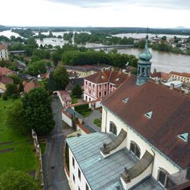 povodeň 2013, pohled na řeku Labe z věže u katedrály sv. Štěpána, 4. června 2013, Litoměřice