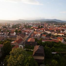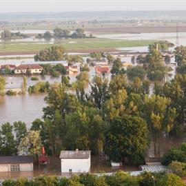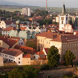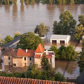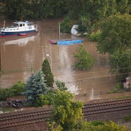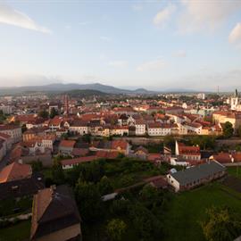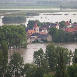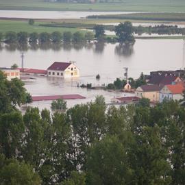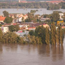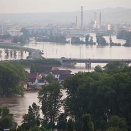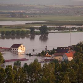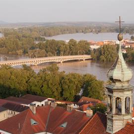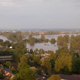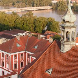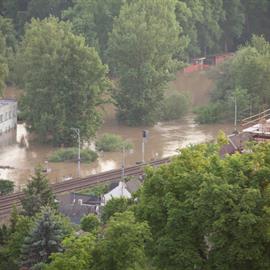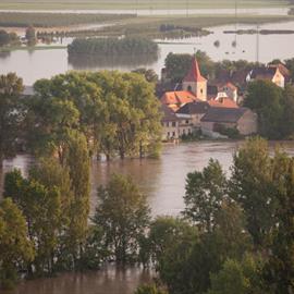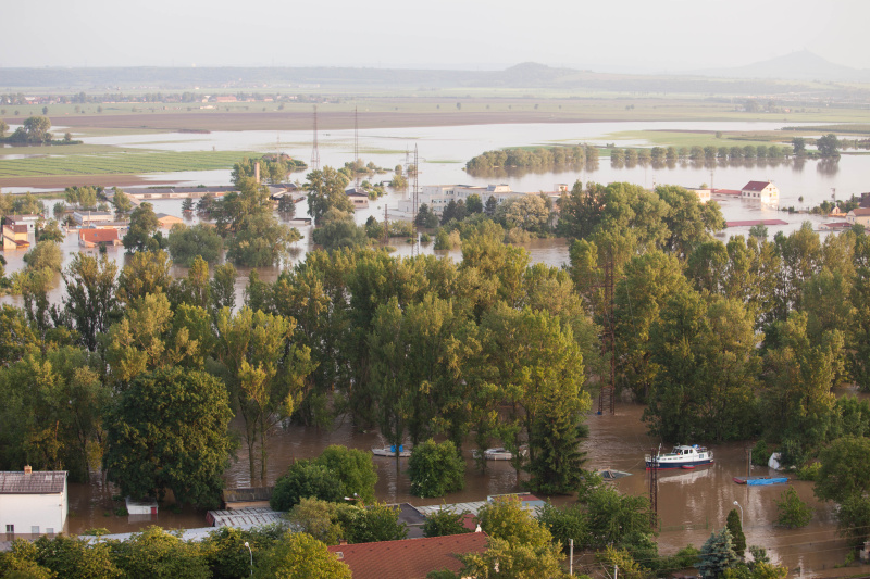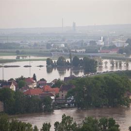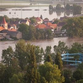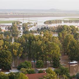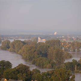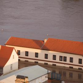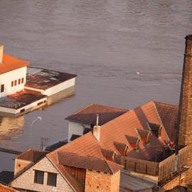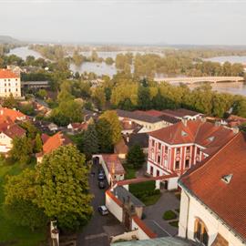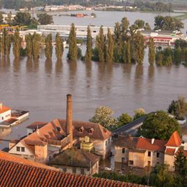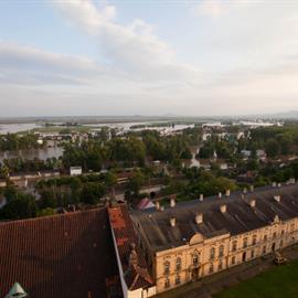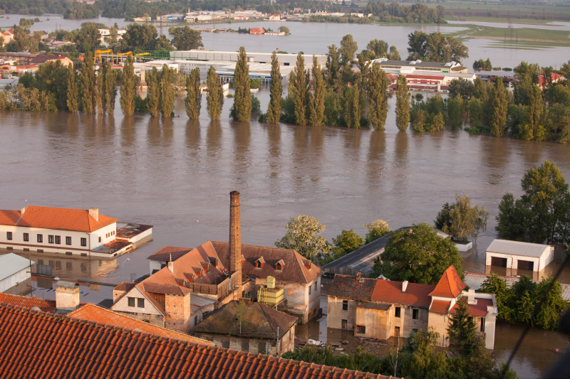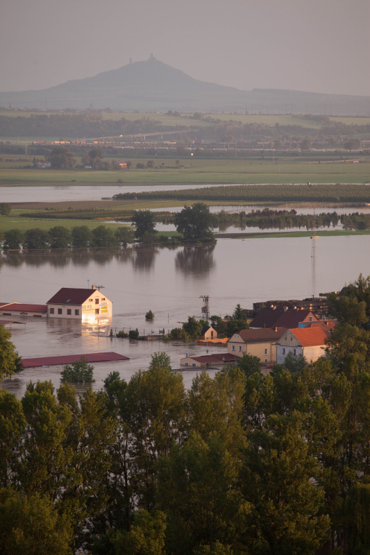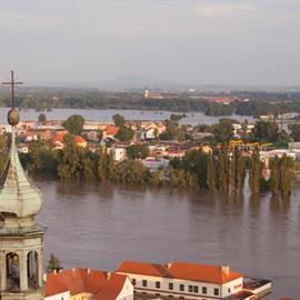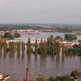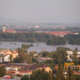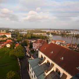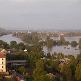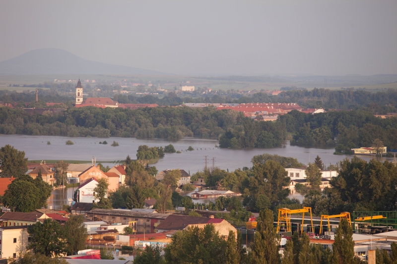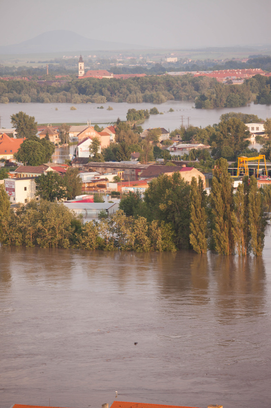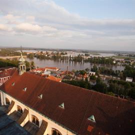 Povodeň 2013: pohled na Litoměřice a Labe z věže u katedrály sv. Štěpána