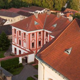 povodeň 2013, pohled na město Litoměřice (včetně katedrály sv. Štěpána a biskupské rezidence), jeho okolí a řeku Labe z věže u katedrály sv. Štěpána, 4. června 2013, Litoměřice
