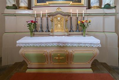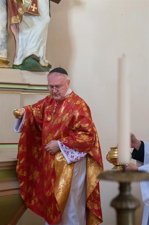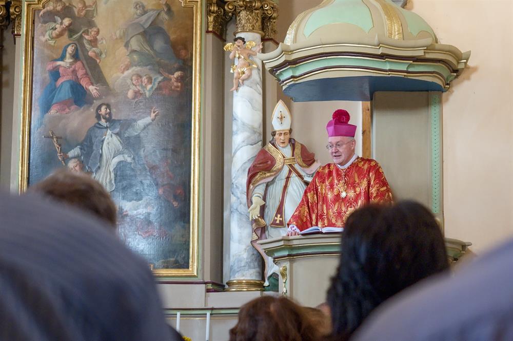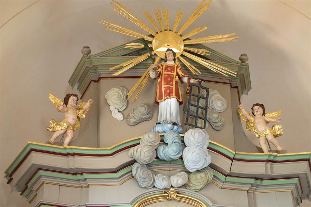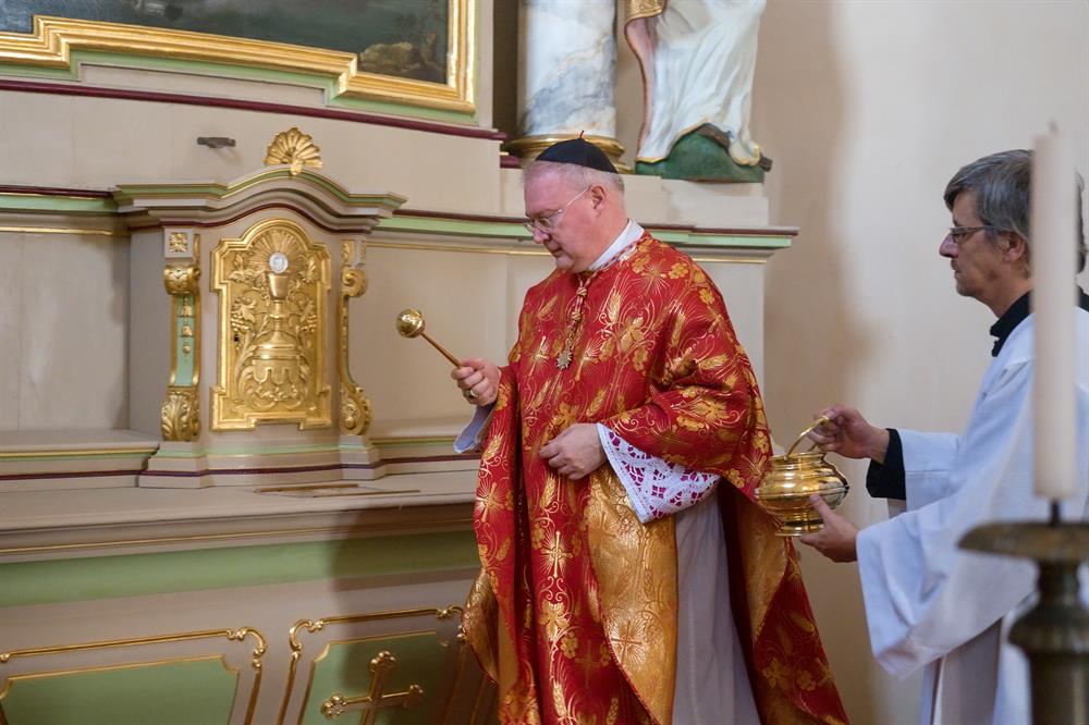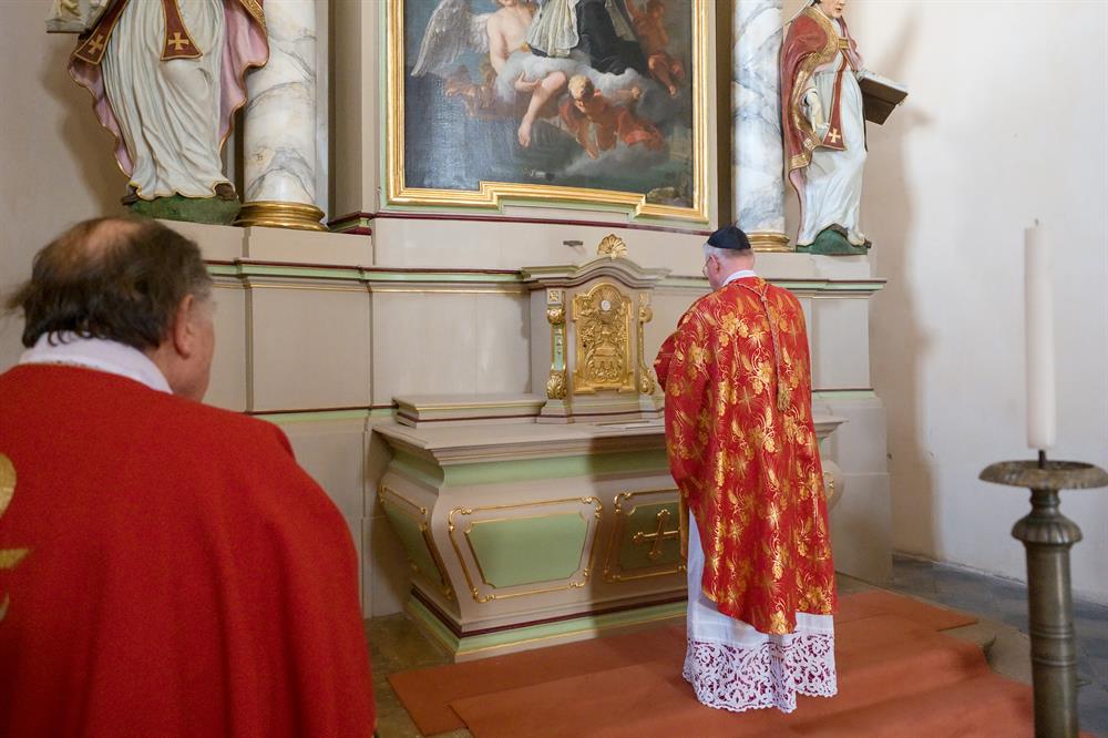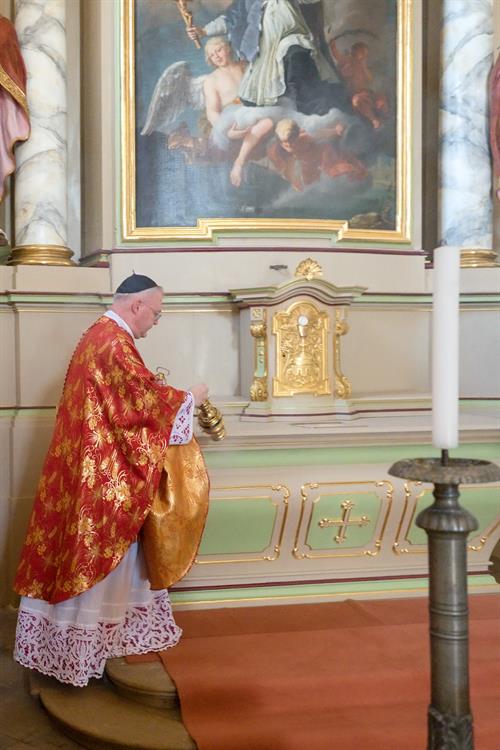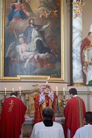 generální vikář Mons. Martin Davídek nově obnovený oltář v kostele sv. Vavřince