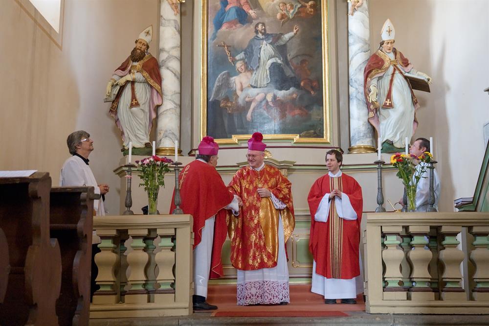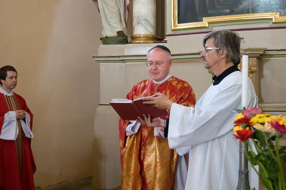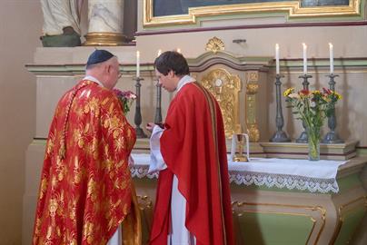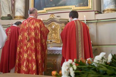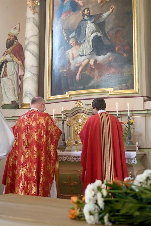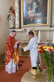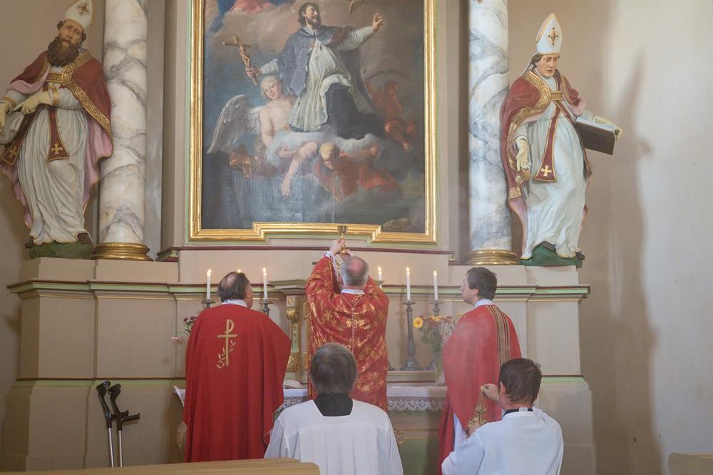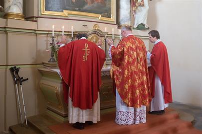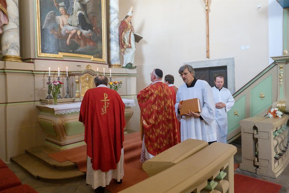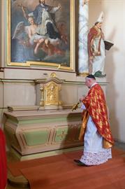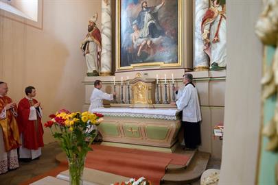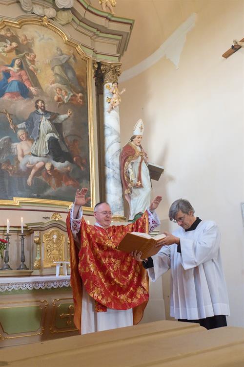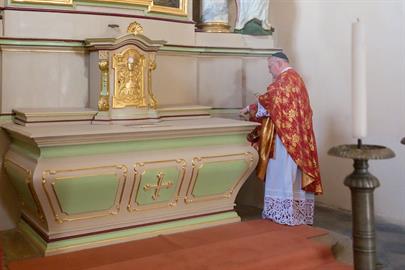 Požehnání obnoveného oltáře v kostele sv. Vavřince v Černčicích