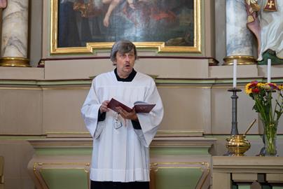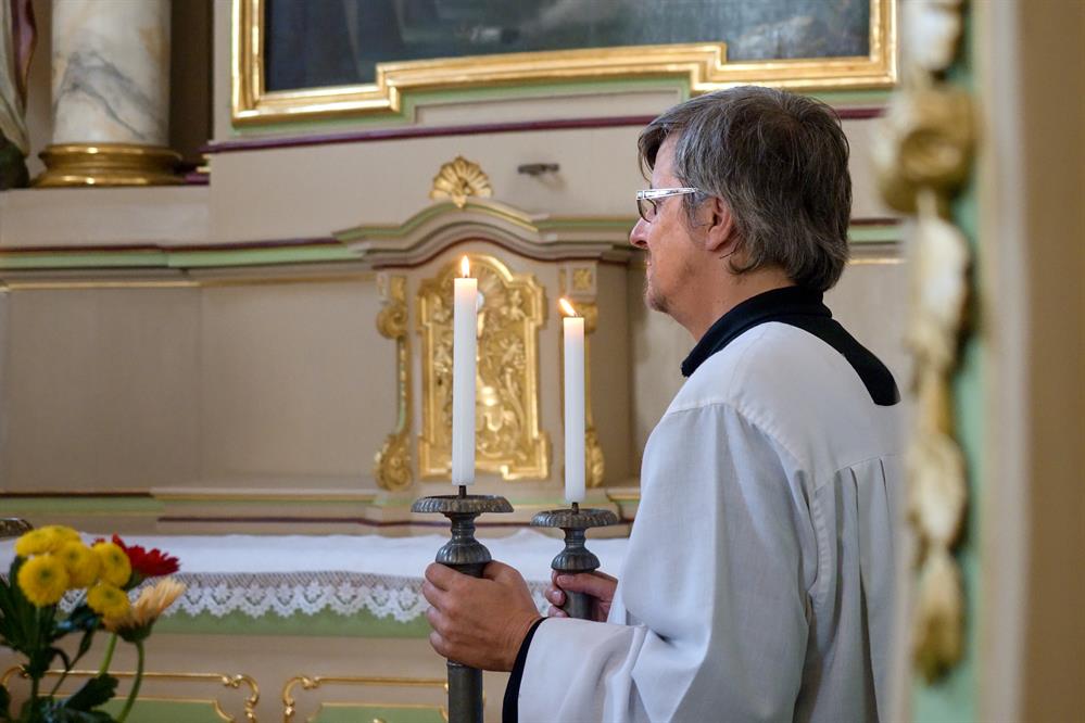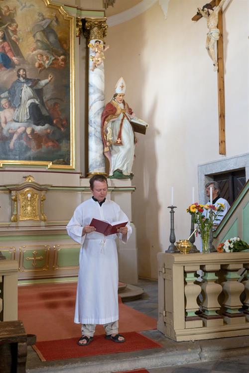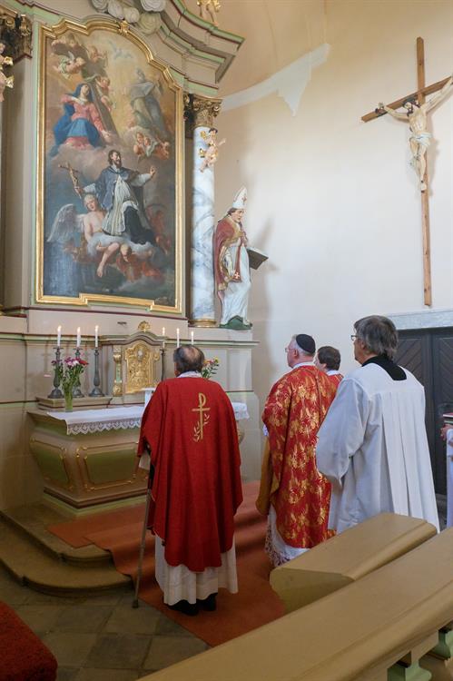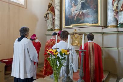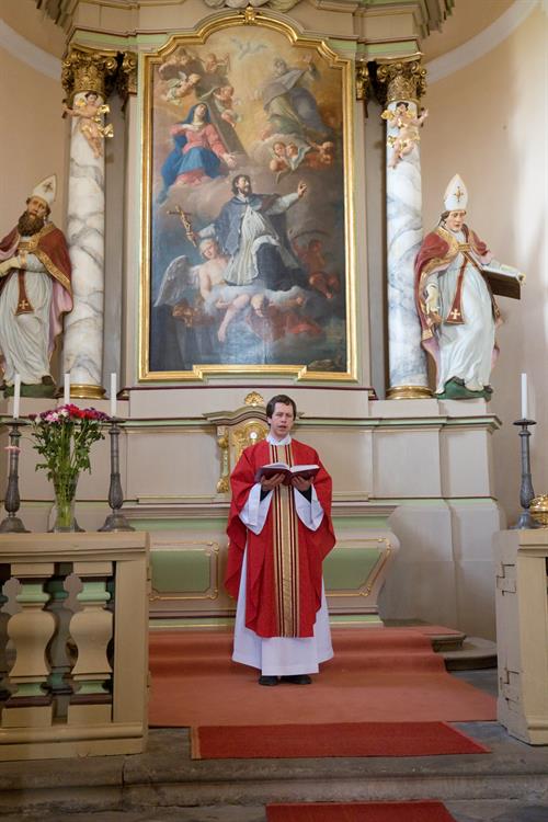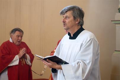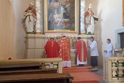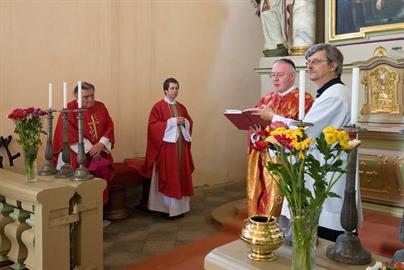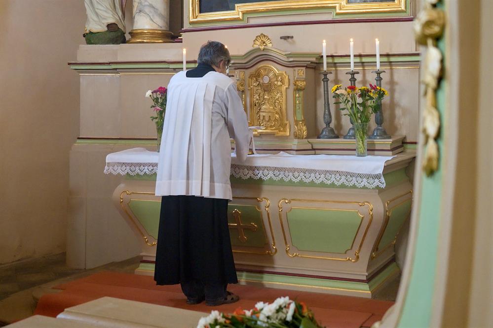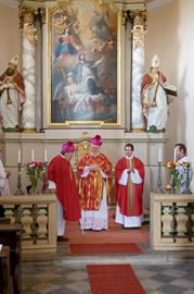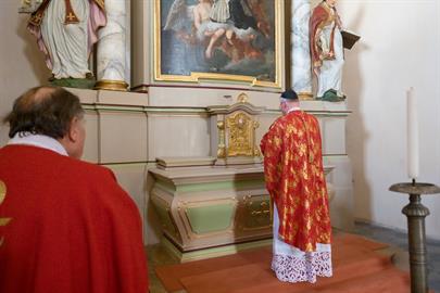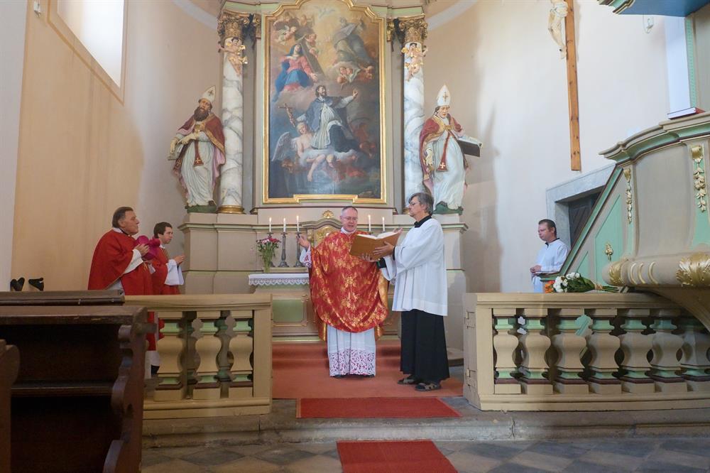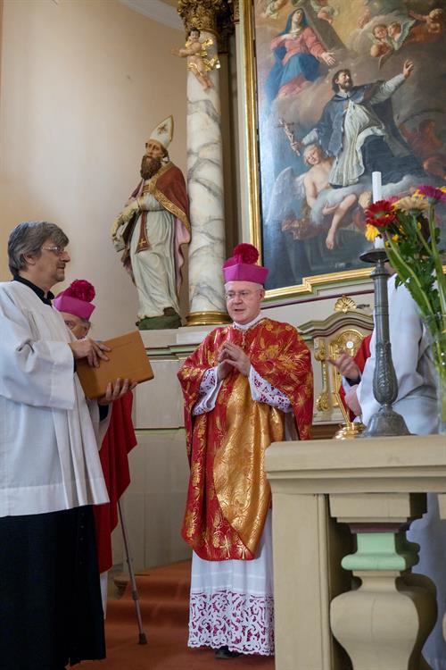 Požehnání obnoveného oltáře v kostele sv. Vavřince v Černčicích