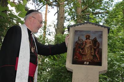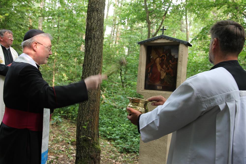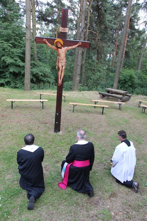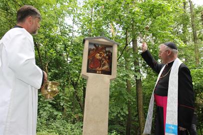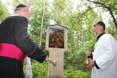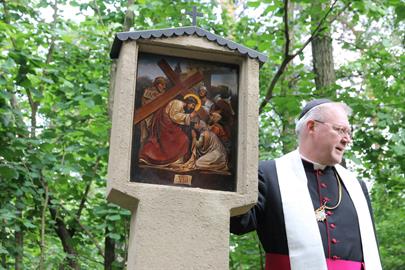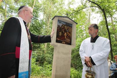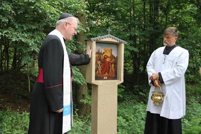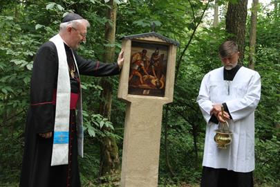 slavnostně požehnal obnovenou křížovou cestu za asistence místního duchovního