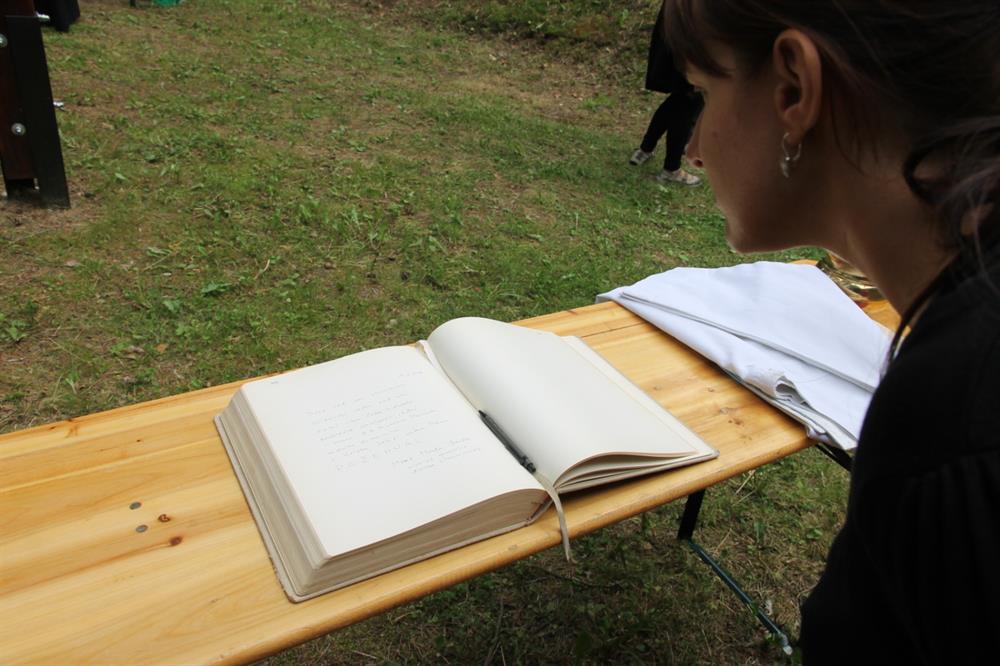 Samotný slavnostní akt započal za krásného počasí nad osadou Kotel. Zde po