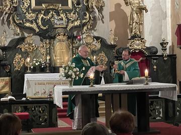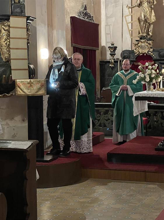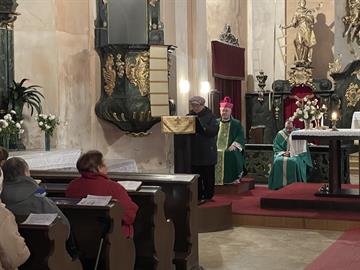provázel liturgii. Poté generální vikář požehnal nově opravená kostelní okna.