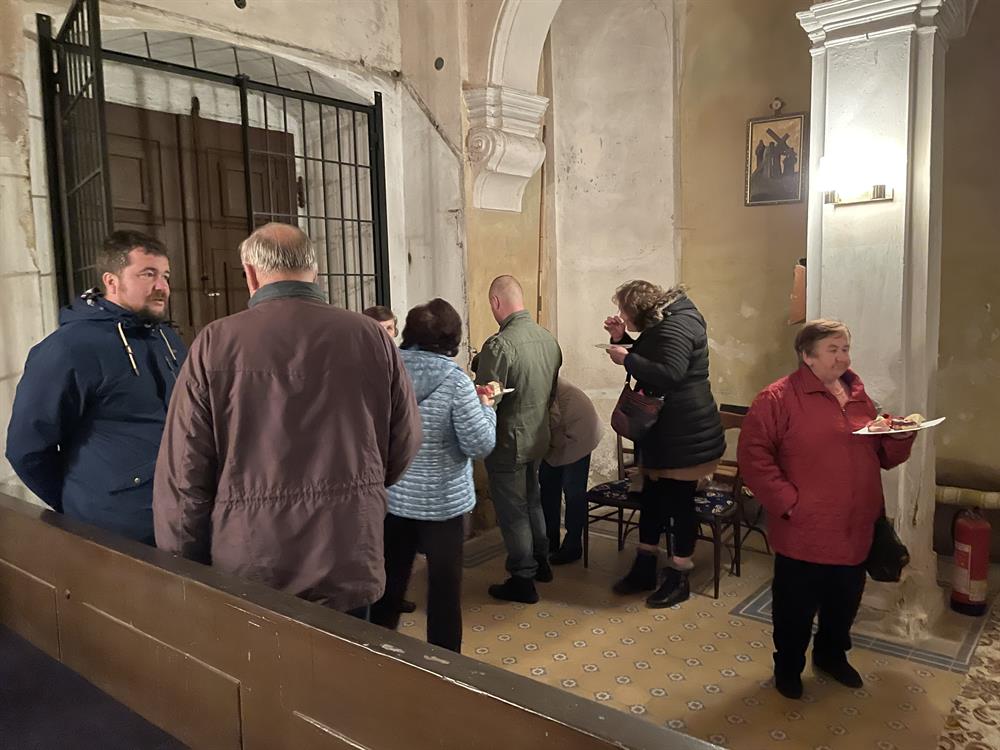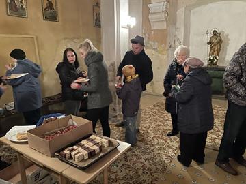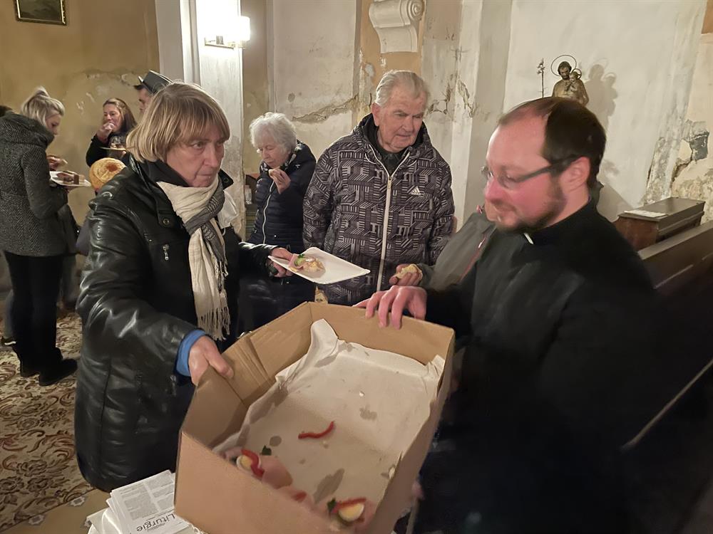 Po skončení mše svaté byli přítomní pozváni k malému agapé u vchodu do kostela.