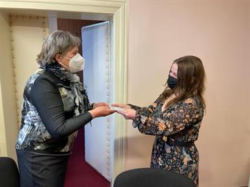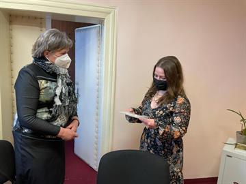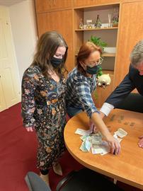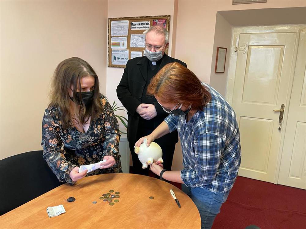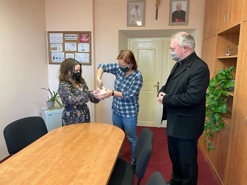 Pracovníci kurie předali výtěžek Tříkrálové sbírky ředitelce Charity