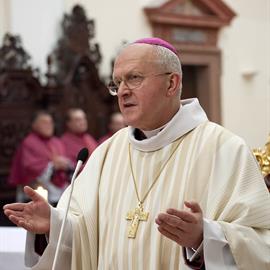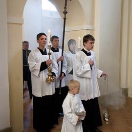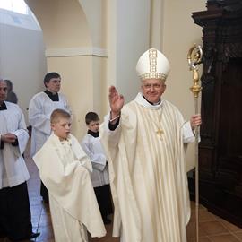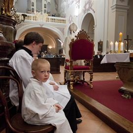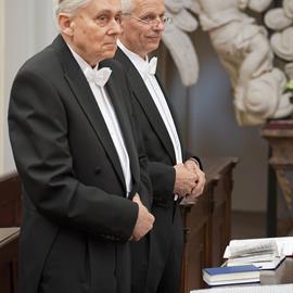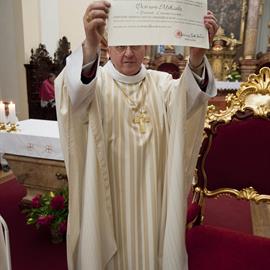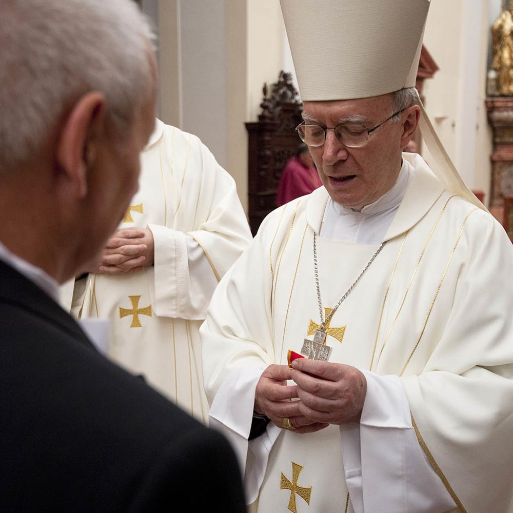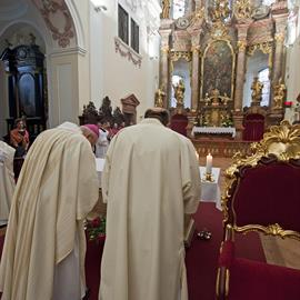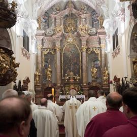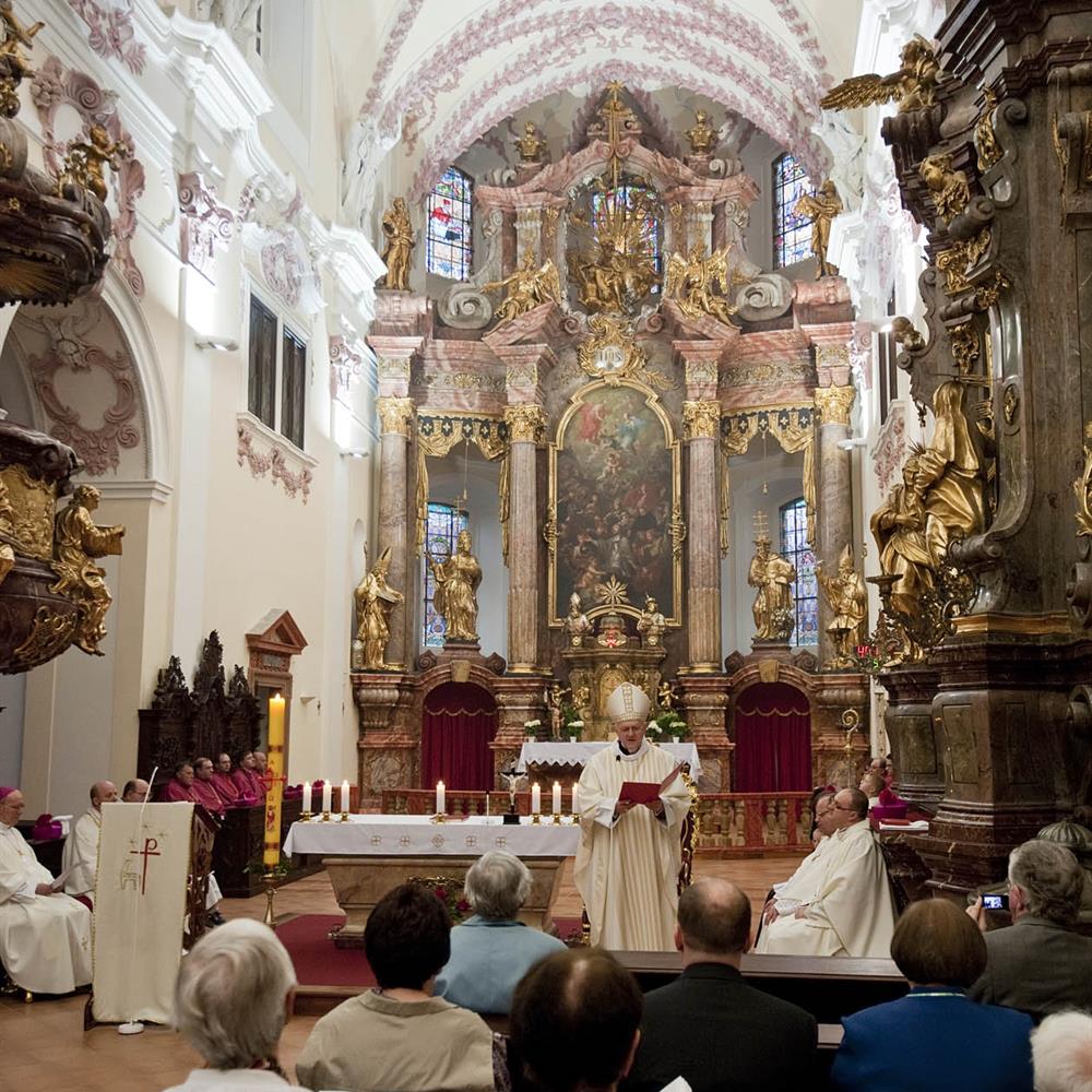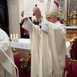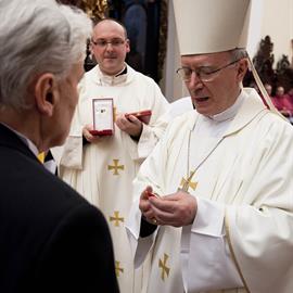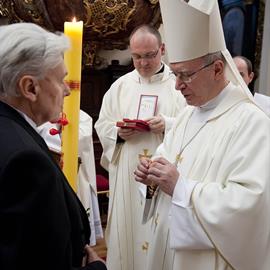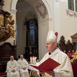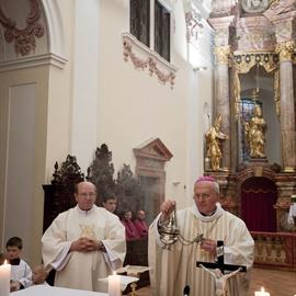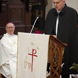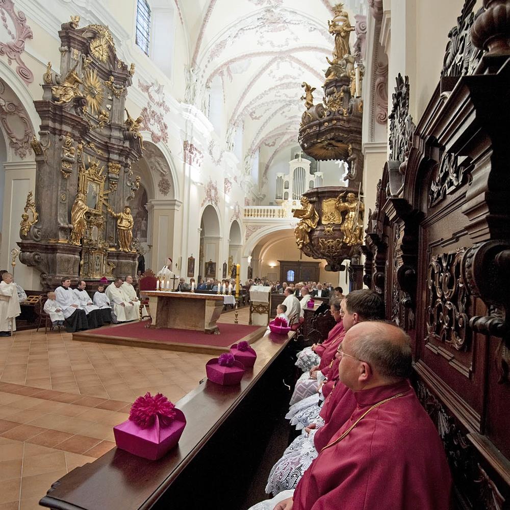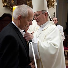 mše svatá s předáním Řádu sv. Řehoře Velikého (vyznamenaní Petr Mikula, místokancléř biskupské kurie v Litoměřicích, a MUDr. Milan Zbořil, osobní lékař čtyř litoměřických biskupů), hlavní celebrant litoměřický biskup Mons. Jan Baxant, 19. květen 2011, děkanský kostel Všech svatých, Litoměřice
