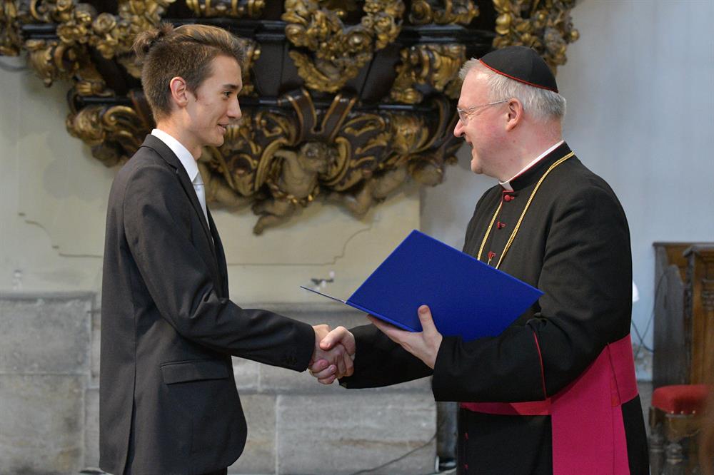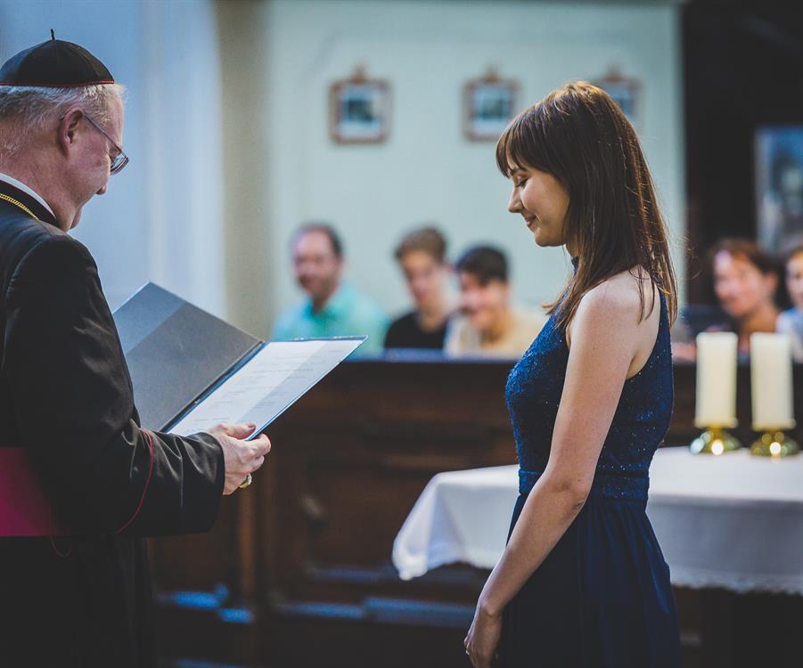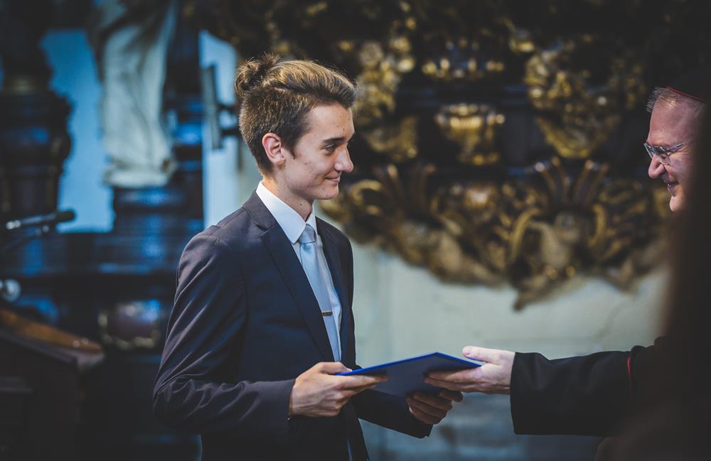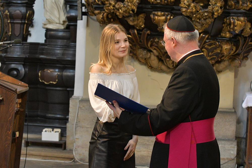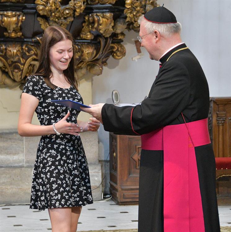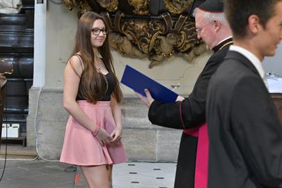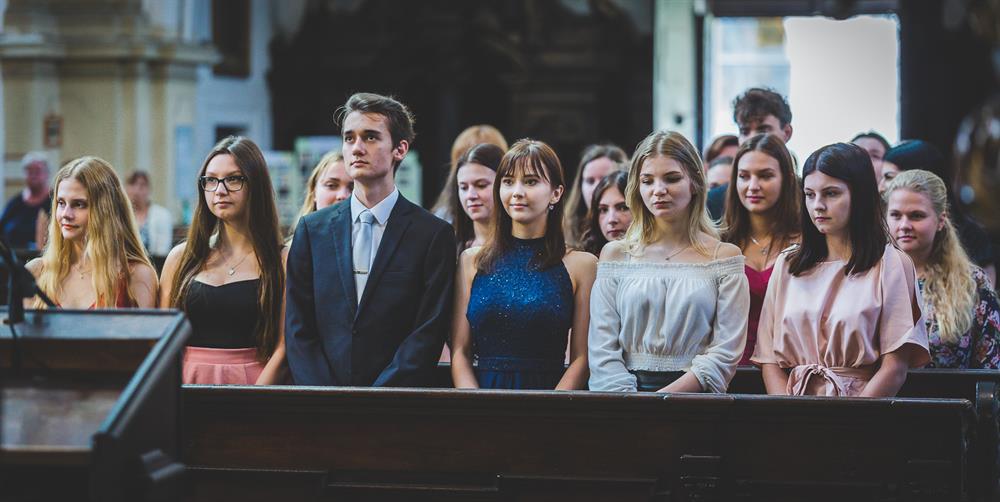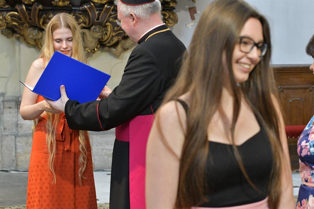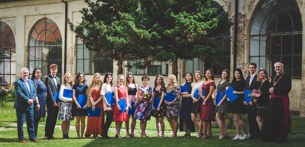 Předávání maturitního vysvědčení absolventům bohosudovského biskupského gymnázia a vernisáž