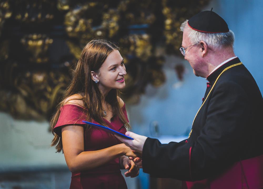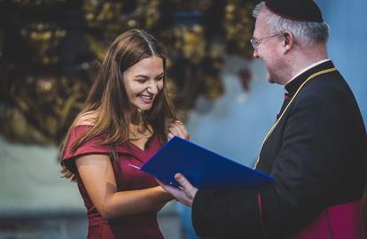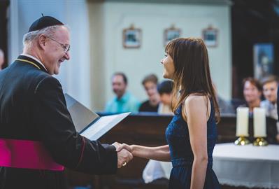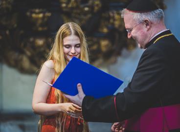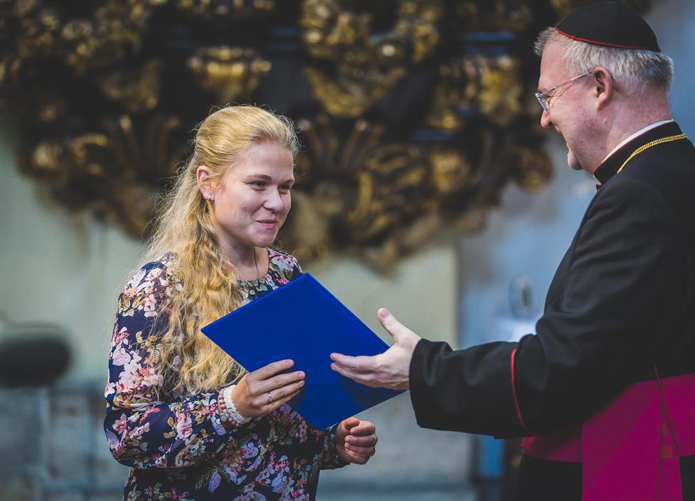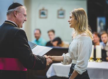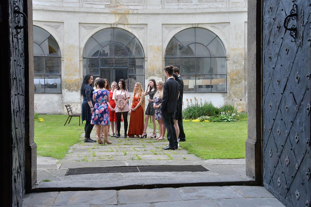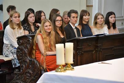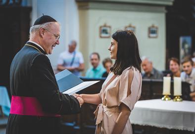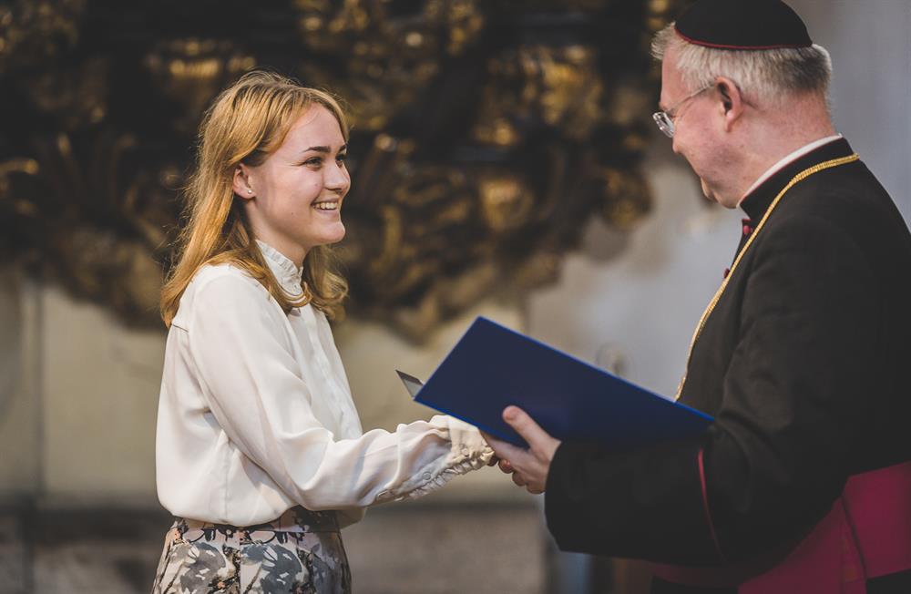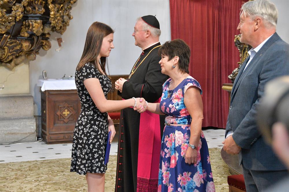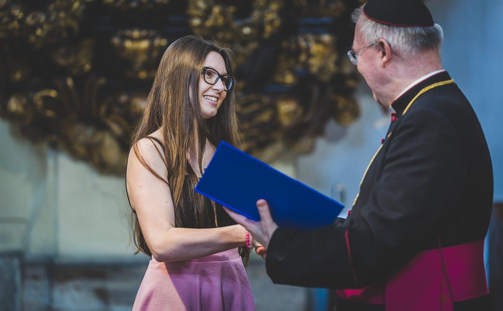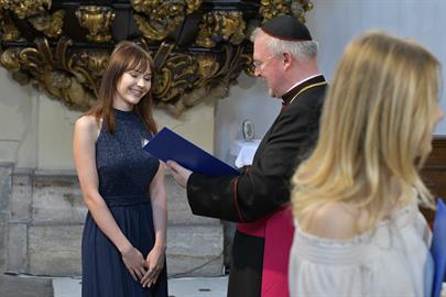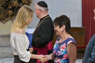 Předávání maturitního vysvědčení absolventům bohosudovského biskupského gymnázia a vernisáž