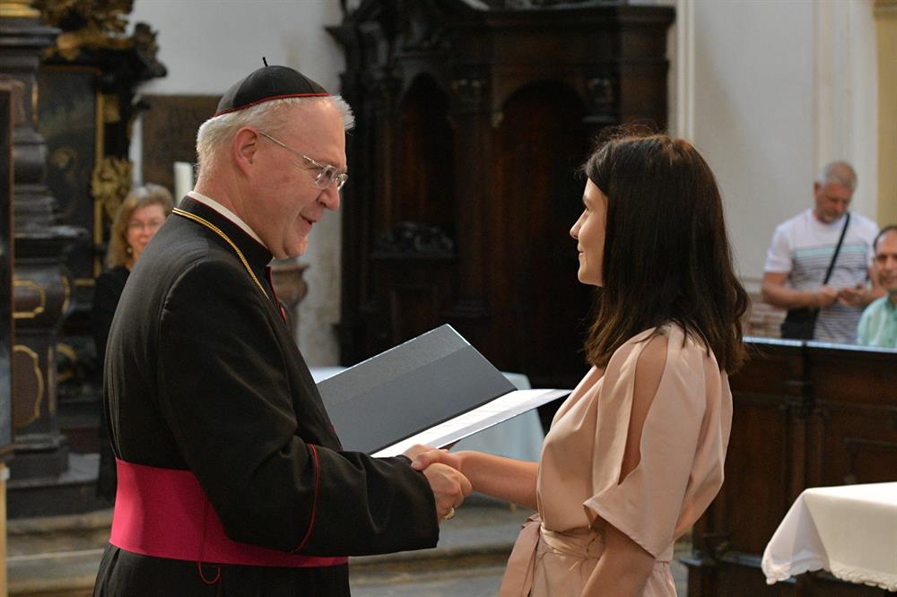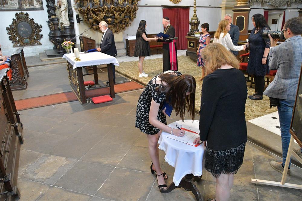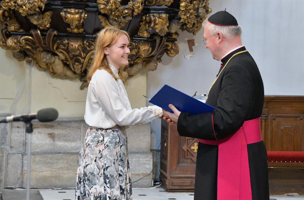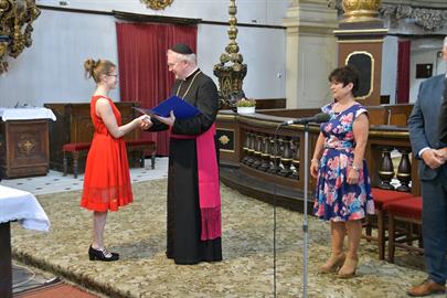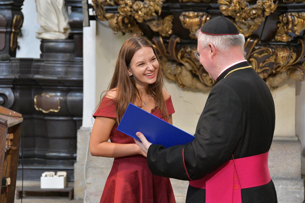 Ve čtvrtek 25. června 2020 od 15 hodin za přítomnosti starosty města Krupky PhDr. Ing. Zdeňka Matouše, Ph.D., MBA, ředitelky biskupského gymnázia Mgr. Bc. Jany Pucharové, zástupce ředitele Mgr. Jiřího Breue, členů pedagogického sboru, rodičů a přátel školy předával generální vikář Mons. Martin Davídek maturitní vysvědčení letošním maturantům. Slavnostní předávání se uskutečnilo v bohosudovské Bazilice Panny Marie Sedmibolestné, ve které se následně od 16.30 hodin konala také vernisáž uměleckých děl. Věnovali je jak dárci z ústecké univerzity třetího věku, tak i žáci a studenti, kteří tak chtějí podpořit opravu varhan v bazilice v Bohosudově. Vernisáž a sbírku organizuje Spolek pro záchranu bohosudovských varhan (https://givt.cz/spolek-pro-zachranu-bohosudovskych-varhan).