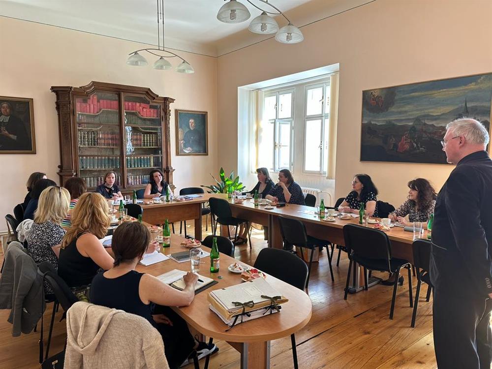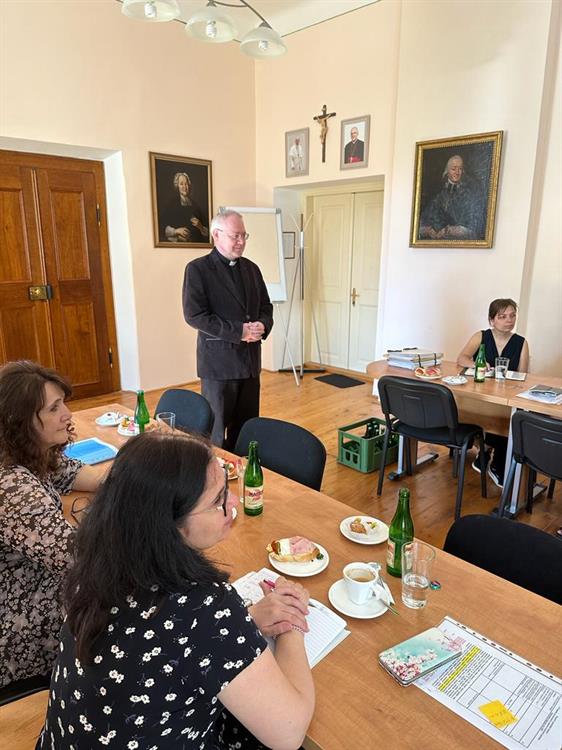 V pondělí 29. května 2023 od 10 hodin proběhlo na biskupské kurii v Litoměřicích předprázdninové setkání vikariátních účetních. Účetní vyhodnotily průběh účetních uzávěrek a probraly aktuální otázky. Pozdravit je přišel také generální vikář Mons. Martin Davídek. Přejeme požehnané léto jim i jejich rodinám.