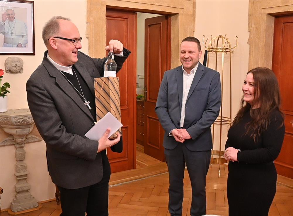 V samém závěru adventu poděkoval biskup Stanislav Přibyl zaměstnancům biskupského úřadu za jejich práci a službu diecézi. Pracovníci kurie se sešli na biskupství k malé oslavě a biskupovi předali společný vánoční dárek. Tekutý. A prý lahodný.
