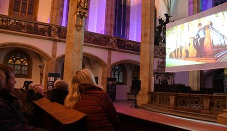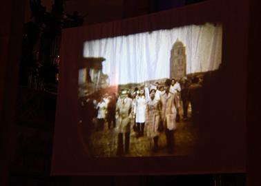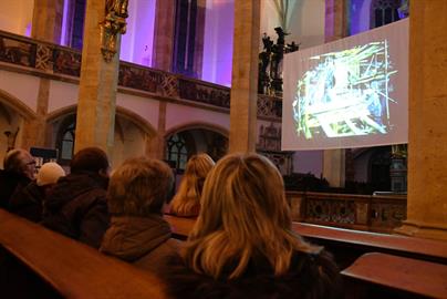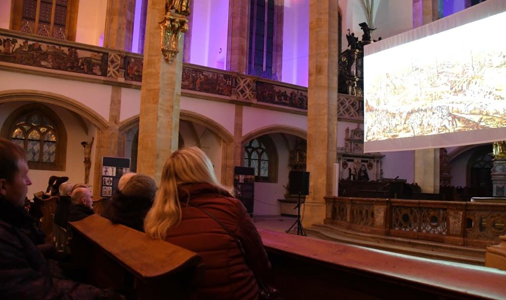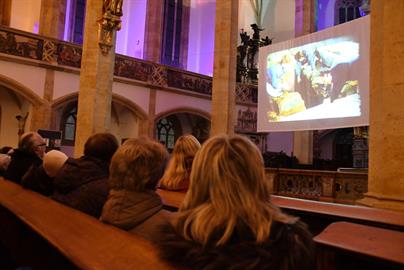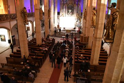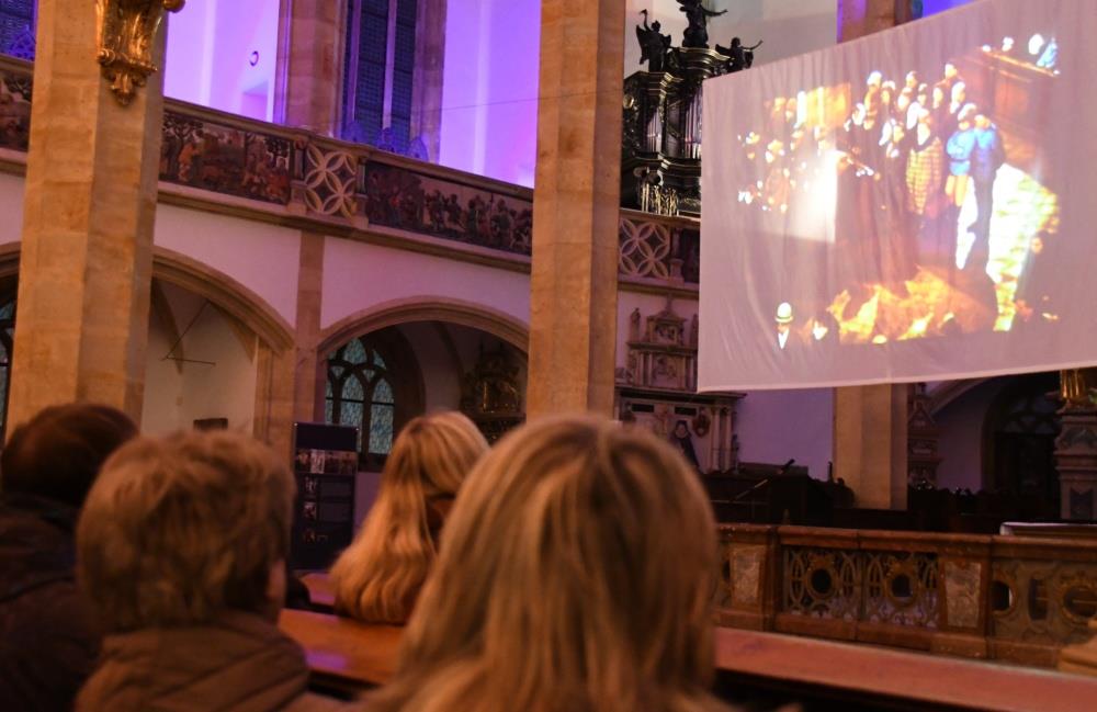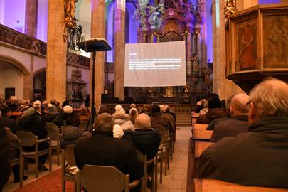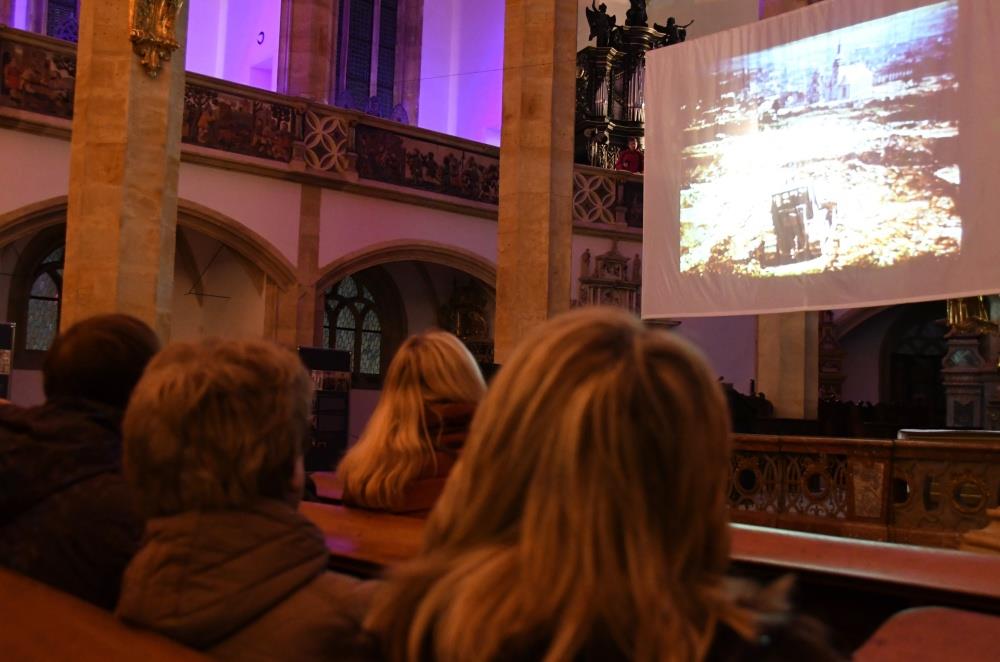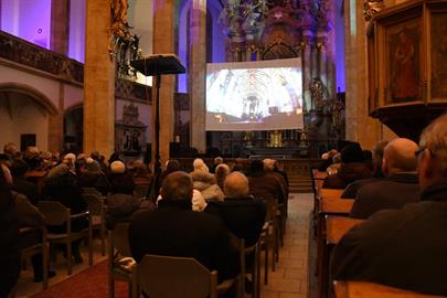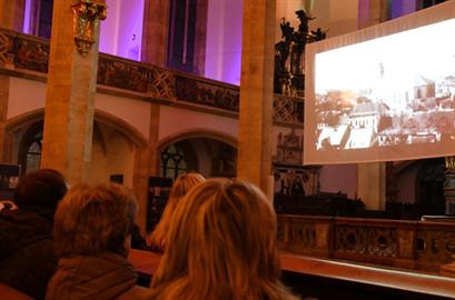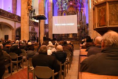 Premiéra dokumentárního filmu „Chrám z popela zdvižený“ režiséra Martina Studeckého o přesunutém mosteckém kostele, 22. února 2018, kostel Nanebevzetí Panny Marie, Most
