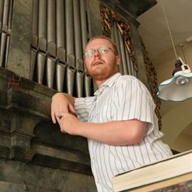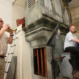 prezentace ohrožených varhan, projekt „Za varhanami kostelů litoměřické diecéze, diecézní organolog Radek Rejšek a varhaník pražské Lorety Vít Janata, 16. srpna 2013, kostel Nanebevzetí Panny Marie, Liběšice u Litoměřic