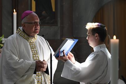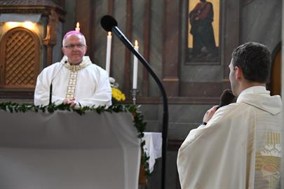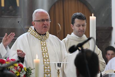 Mons. Jan Baxant, který předsedal slavnostní mši svaté. K oslavě patřil