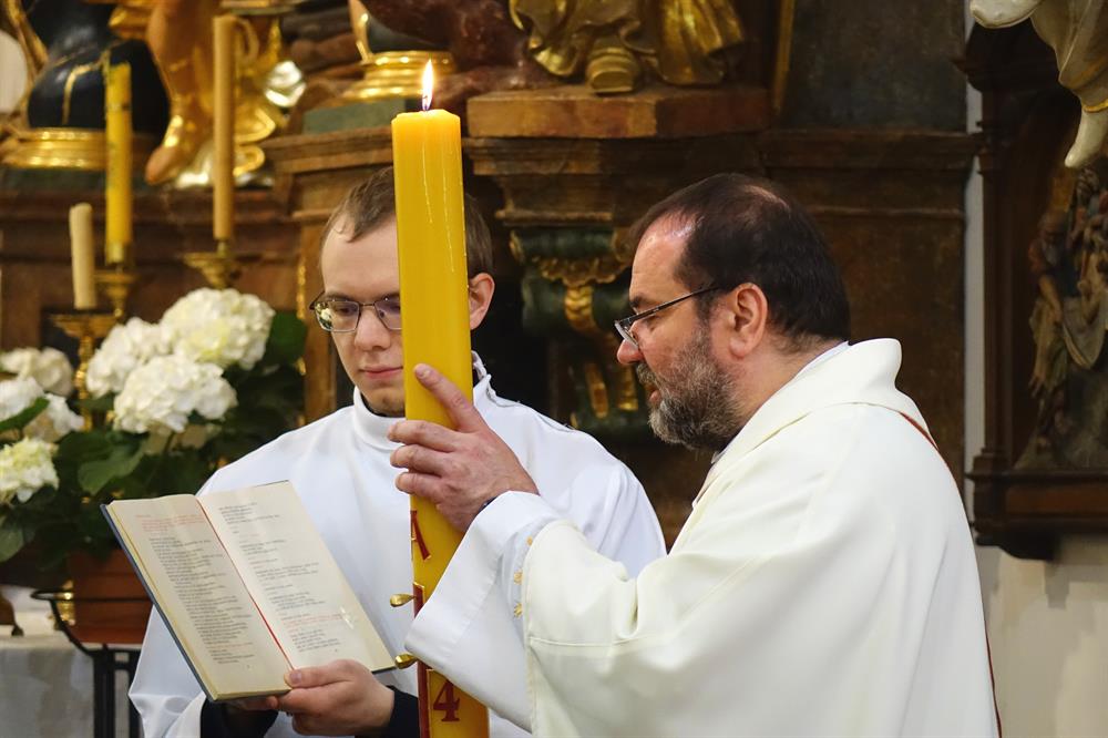 Fotografie z modlitby Křížové cesty 29. března 2024 a z velikonoční vigilie v sobotu 30. března 2024 v ŘKF Mladá Boleslav. Celebroval mladoboleslavský arciděkan R.D. Pavol Poláček.