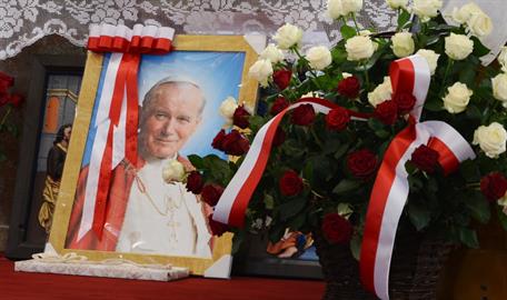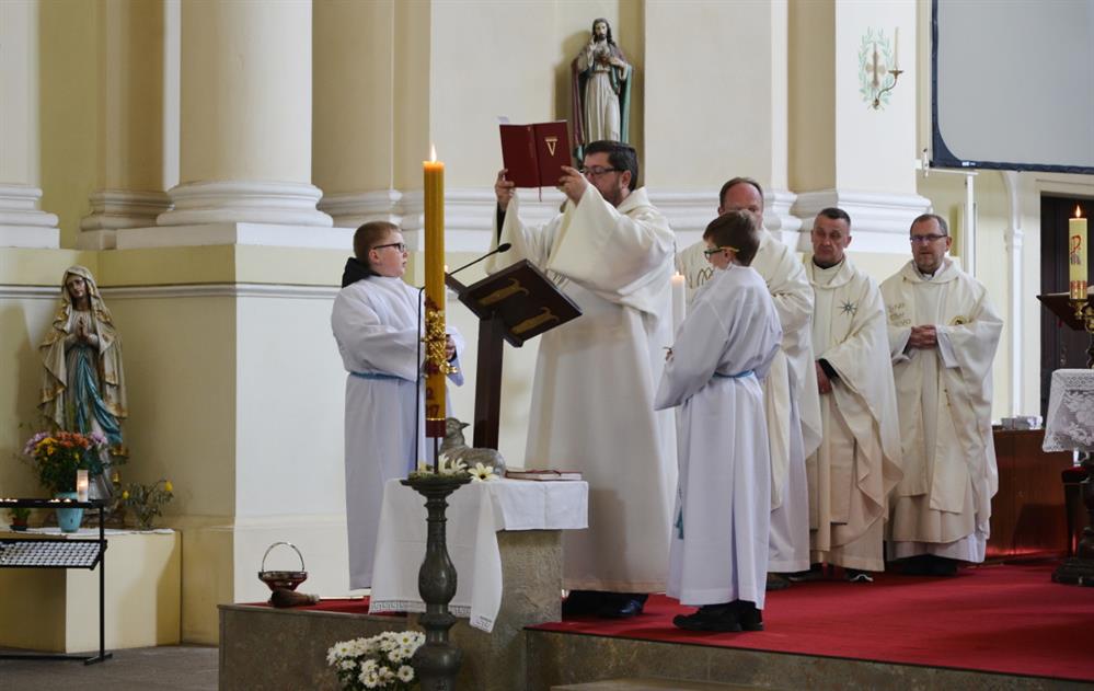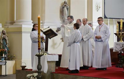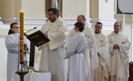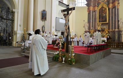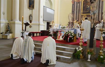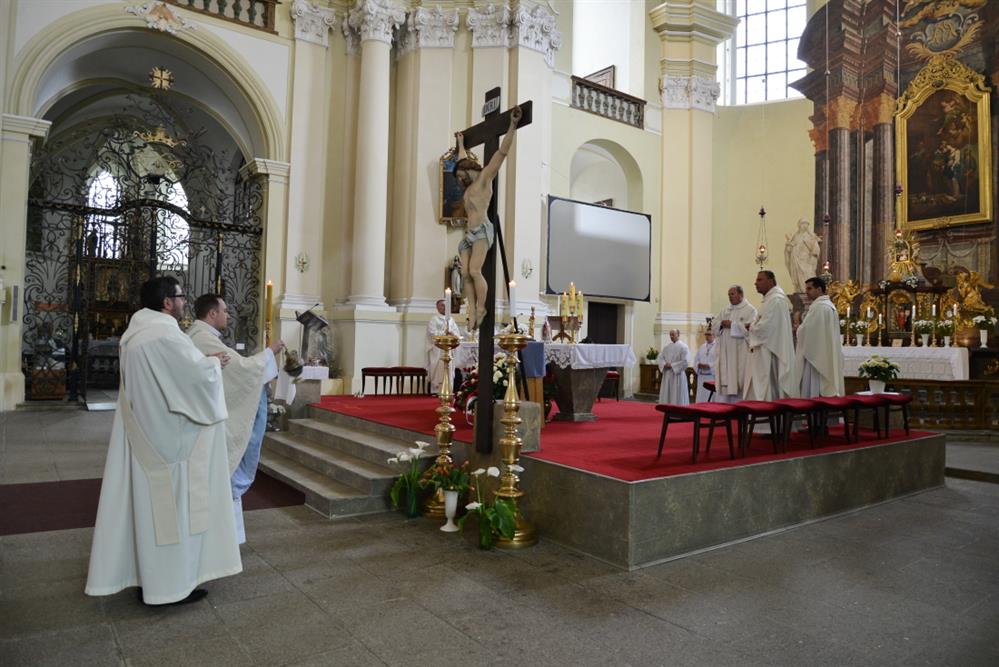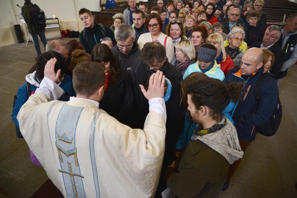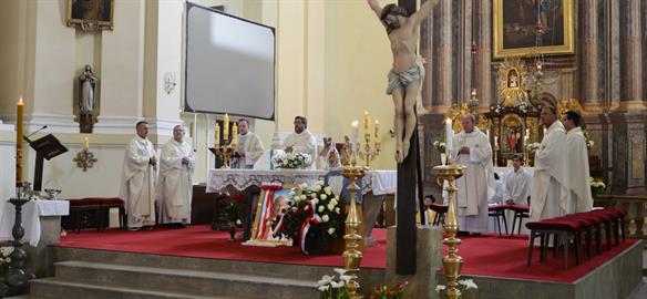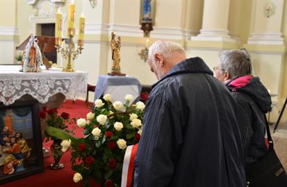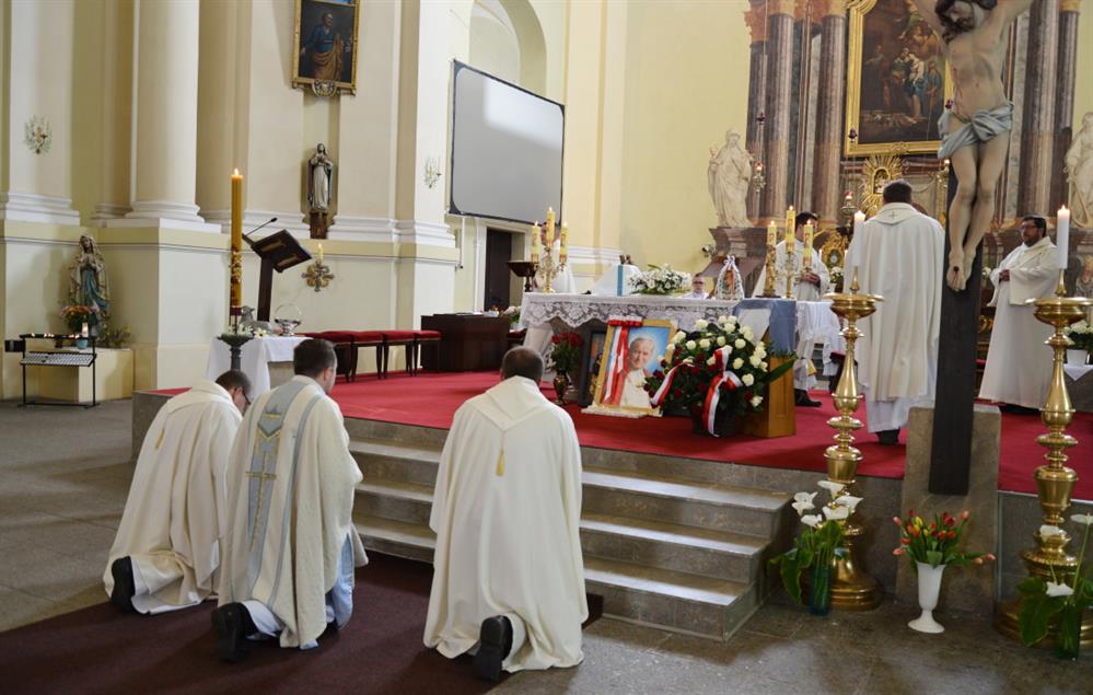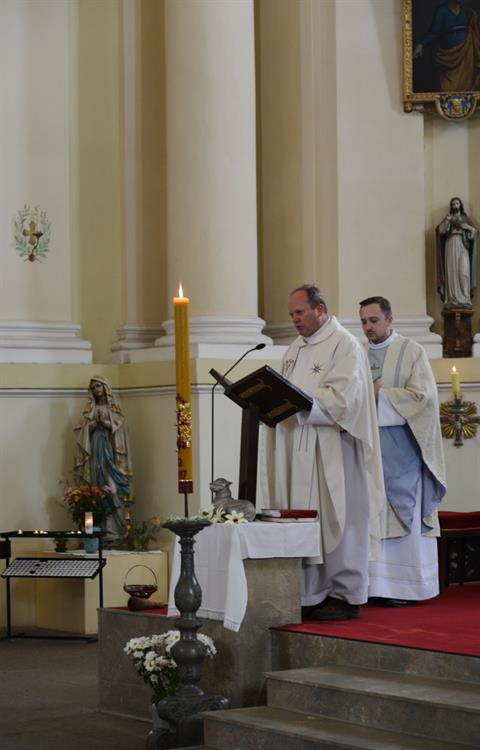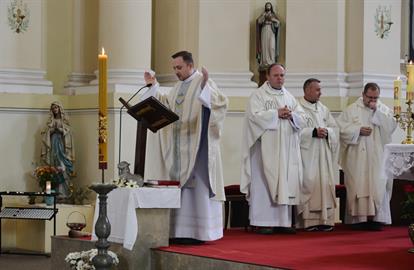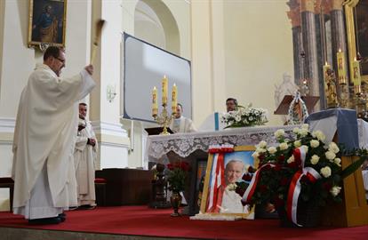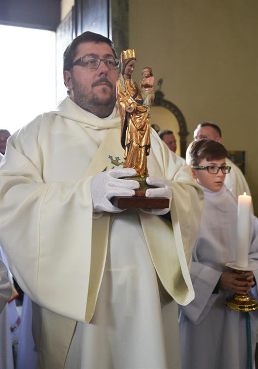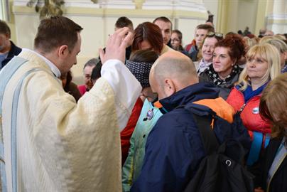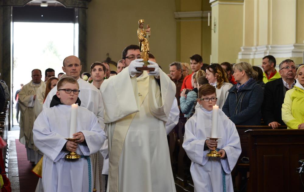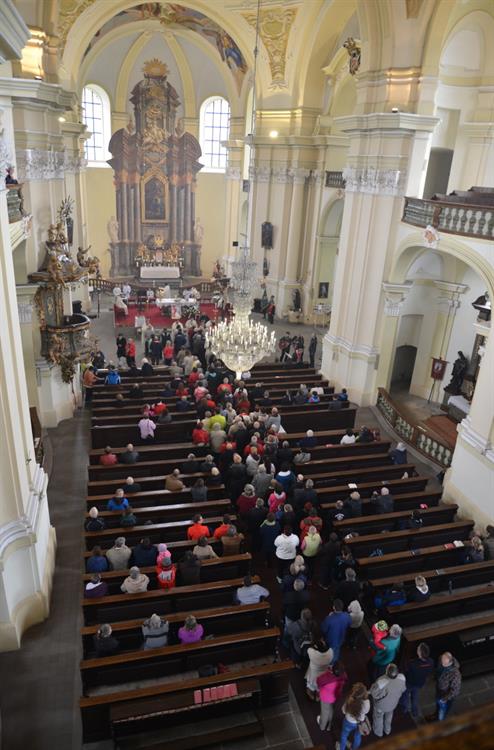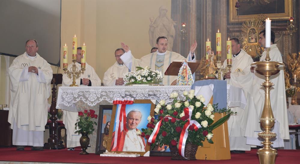 První Májová – mariánská slavnost s českými, polskými a německými poutníky a českými a polskými duchovními. Dar polských poutníků z farnosti Bogatynia - obraz sv. Jana Pavla II. Novokněžské požehnání uděloval R.D. Pavel Michalec. Mše svatá s originálem sošky milostné Panny Marie Hejnické, 1. 5. 2017, kostel Navštívení Panny Marie, Hejnice