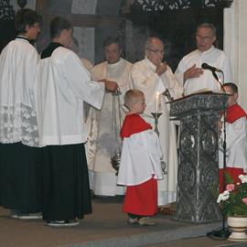 pouť na první pátek v měsíci, mše svatá, adorace, procesí; litoměřický biskup Jan Baxant; 7. září 2012; klášterní kostel Narození Panny Marie, Doksany