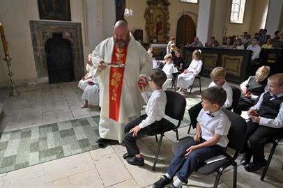 V neděli 19. června 2022 proběhla v chrámu sv. Petra a Pavla v Mělníku Slavnost Těla a Krve Páně, při které k prvnímu svatému přijímání přistoupilo 14 dětí z přidružených farností. Mši svaté předsedal místní duchovní správce P. Jacek Zyzak MS.