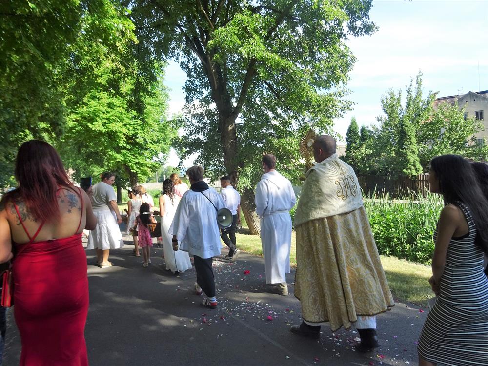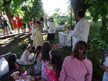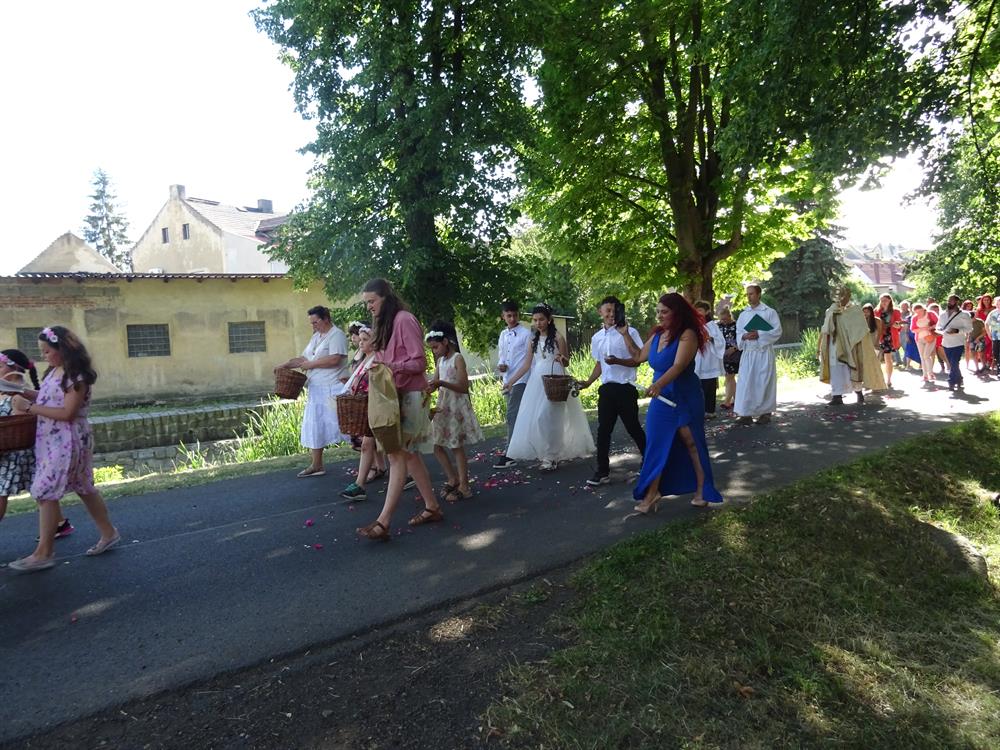 přítomným v proměněné Hostii k oltářům v obci. V letošním roce byly připraveny